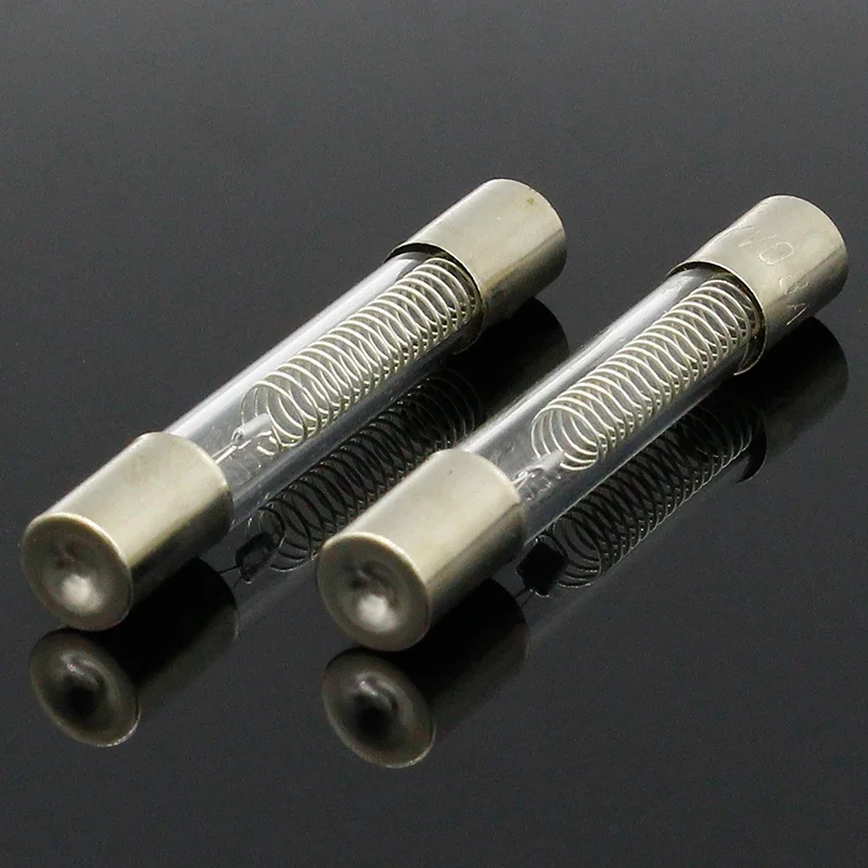 Experience reliable protection with this set of ten high-voltage microwave oven fuses designed for ultimate safety and performance. Each fuse features a sleek, transparent glass body that reveals the intricate internal coil, showcasing precision craftsmanship. The shiny, silver-colored metallic end caps add a modern industrial touch, emphasizing their durable construction. With a voltage rating of 5 kV and a current capacity of 0.8 A (800 mA), these fuses are built to handle high-voltage microwave applications safely. They are custom-designed and compatible with various microwave models, ensuring seamless integration into your appliances. The reflective black surface presentation highlights their clarity and fine detail, reflecting a professional and high-tech aesthetic suited for adult enthusiasts and professionals seeking quality replacement parts.