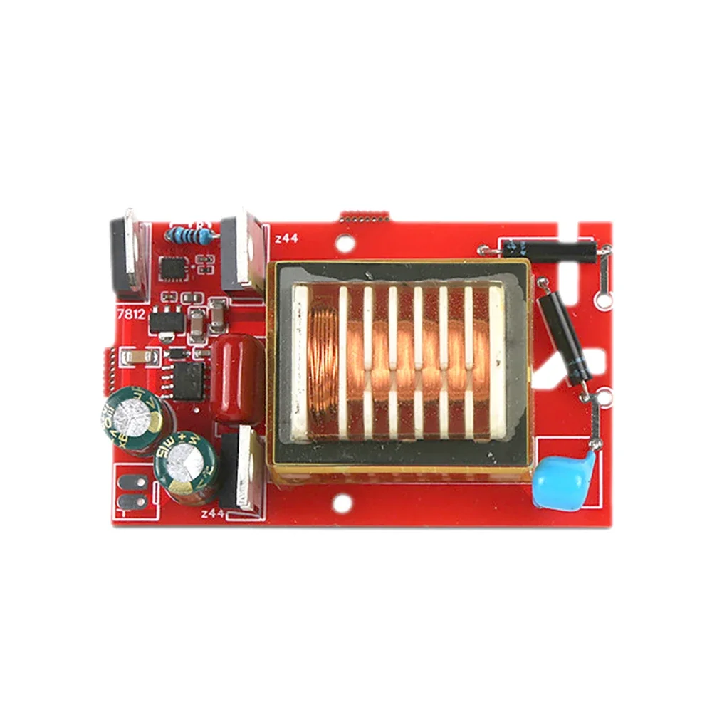 Imagine elevating your projects with this sleek, high-performance pulse generator module. Encased on a vibrant red PCB, the transparent rectangular insulator reveals intricate internal copper windings, highlighting its advanced engineering. The module combines a robust industrial aesthetic with visually striking components, including large electrolytic capacitors, a lively blue resistor, and metallic mounting brackets. Perfect for static electricity, high-voltage discharge, ignition, or capacitor charging, this device offers reliable continuous operation at 10KV. Its precise design ensures safety and durability while providing powerful, steady pulses ideal for your experiments or industrial needs. Trust in this module's quality to bring your high-voltage applications to life.