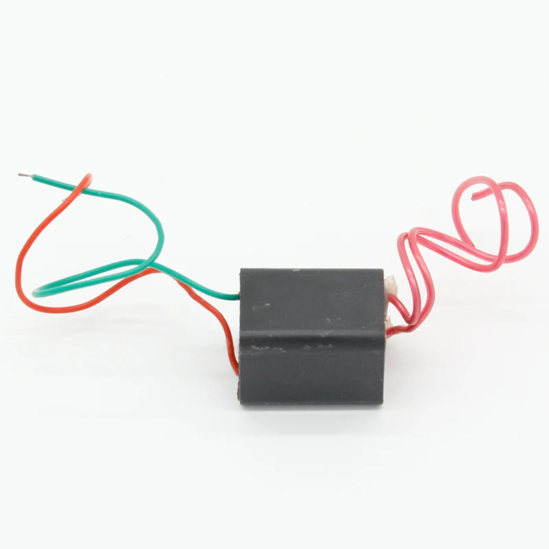 Imagine adding a compact powerhouse to your electronic projects with this high voltage pulse generator. Measuring just 19 x 20 x 18 mm, this device boasts a sleek black design made of durable metal and plastic, giving it a modern, industrial look. Its smooth matte surface complements its technical precision. Two insulated wires, a coiled red positive wire and a straight green wire, extend approximately 110 mm each, adding visual interest and ease of connectivity. Capable of delivering up to 20 kV DC with a pulse current of 0.05A, this module is perfect for high-precision pulse ignition tasks. Think of it as your reliable, high-performance tool for generating powerful sparks in various industrial or hobby applications, all within a compact, efficient form.