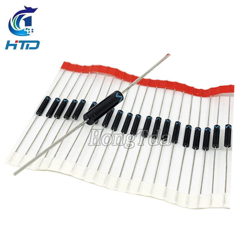 - Each diode features straight, uniform metallic leads extending from both ends, facilitating straightforward through-hole mounting in electronic circuits.