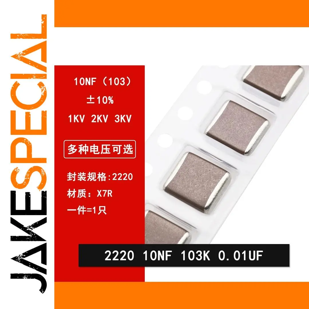 Experience reliable high-voltage performance with this sleek, rectangular SMD capacitor featuring a size code of 2220 and a capacitance of 0.01µF (10NF) with ±10% tolerance. Designed with X7R dielectric material, it offers voltage ratings of 1000V, 2000V, and 3000V, making it ideal for high-voltage electronic applications. Its modern, industrial aesthetic includes a smooth, flat top surface and metallic silver-colored sides, emphasizing precision and durability. Packaged in transparent tape for easy automated placement, this capacitor combines functionality with a clean, minimalist design, ensuring efficient integration into your surface-mount technology projects.