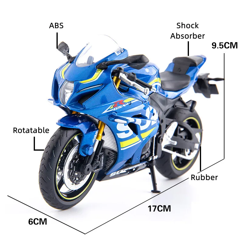 - Constructed from durable metal with highly detailed bodywork, accurately replicating the iconic Suzuki GSX-R1000RR L7 in a compact 1:12 scale.