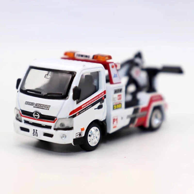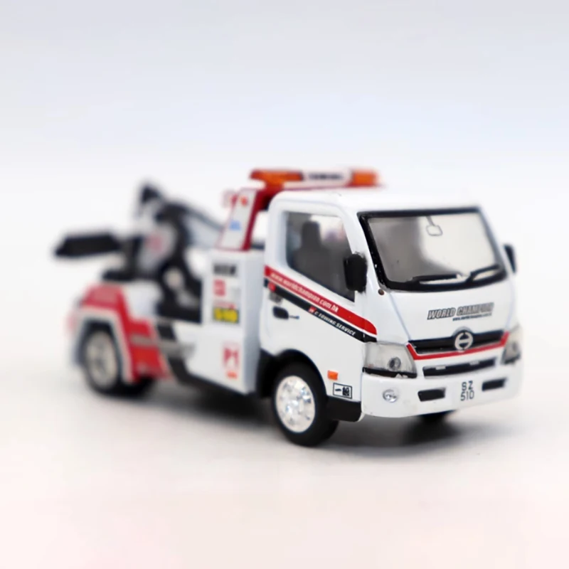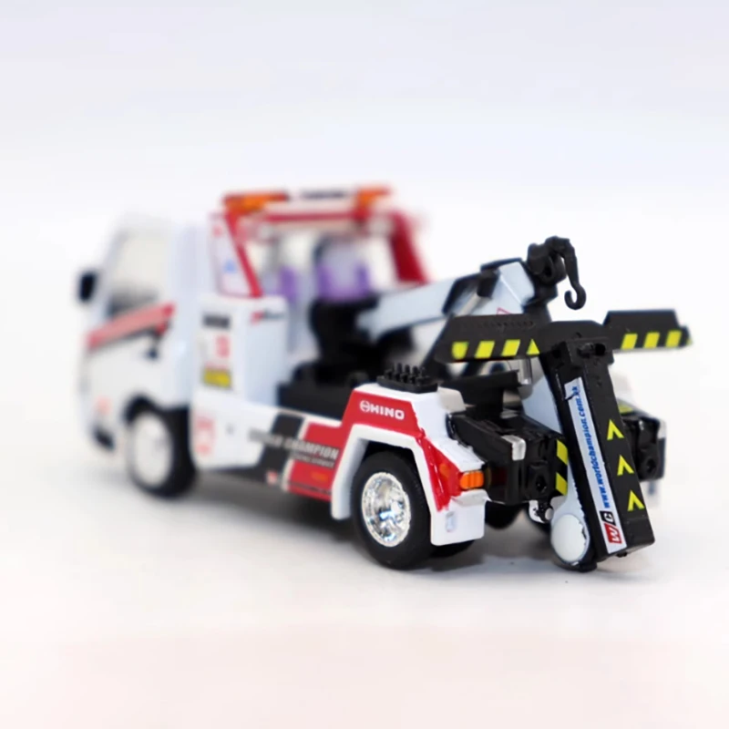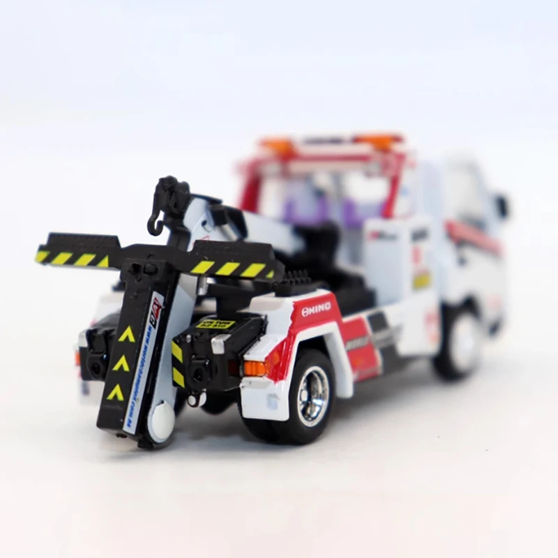- Crafted from alloy and plastic, this model emphasizes durability and detail, accurately mimicking the real Hino 300 tow truck's proportions and mechanical features for an authentic look.