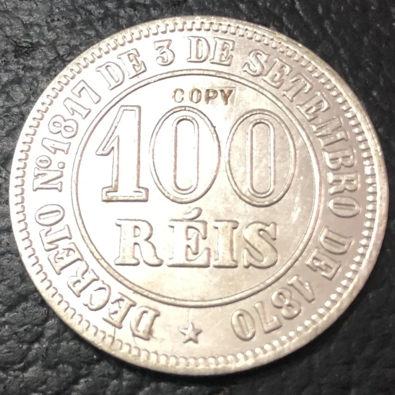 Step into history with this beautifully crafted replica of the 1872 Brazil 100 Reis coin featuring Pedro II. With a diameter of approximately 24-26 mm and weighing around 6-8 grams, this coin captures the essence of late 19th-century European craftsmanship. Its shiny, reflective surface highlights sharp, embossed details including the bold “100 REIS” inscription, surrounded by a dotted rim and vintage decorative elements. Modeled in an antique style, it showcases patriotic themes from the period between 1860 and 1879. The coin’s smooth surface, clear design, and traditional casting techniques give it a distinctive collectible appeal. Perfect for history and coin enthusiasts, this replica enhances any collection with its authentic vintage appearance and meticulous craftsmanship, offering a piece of historical artistry.