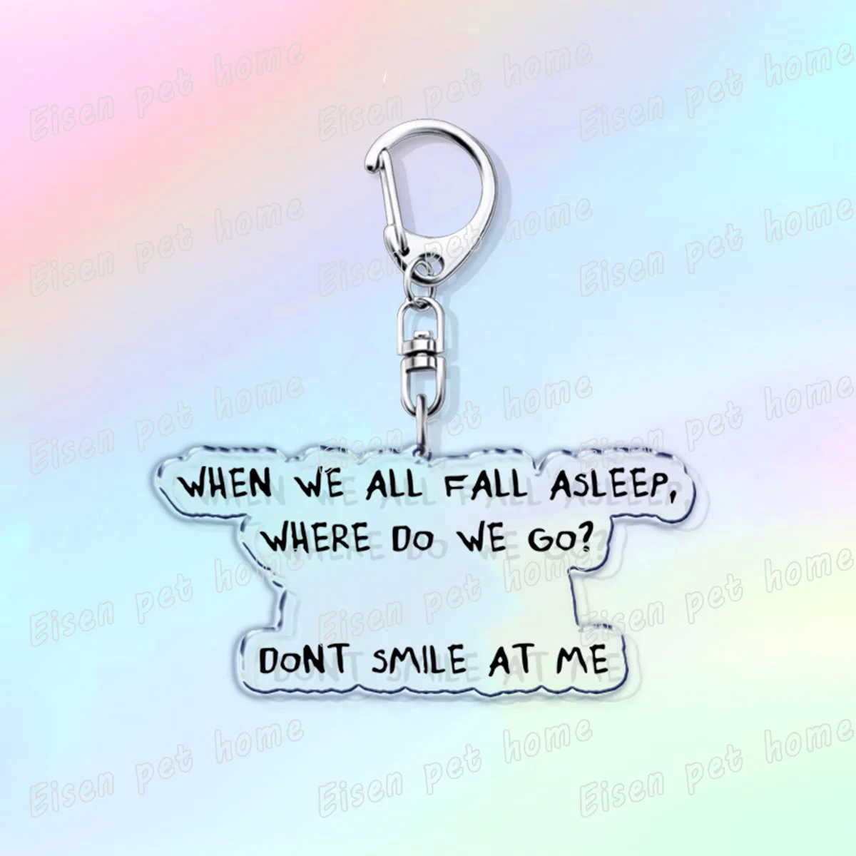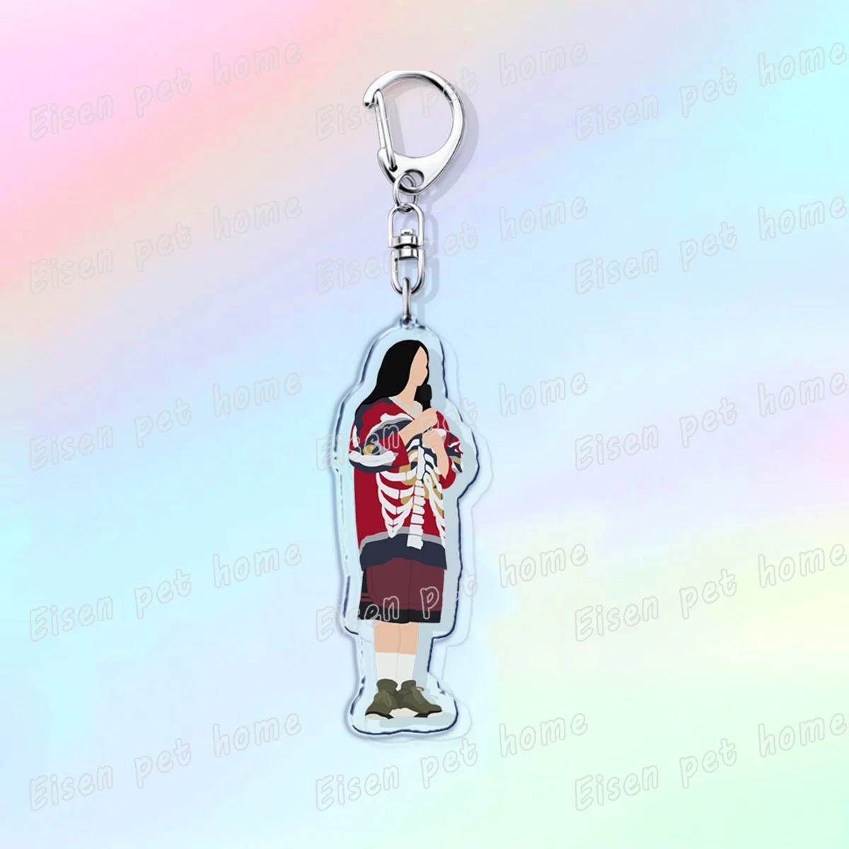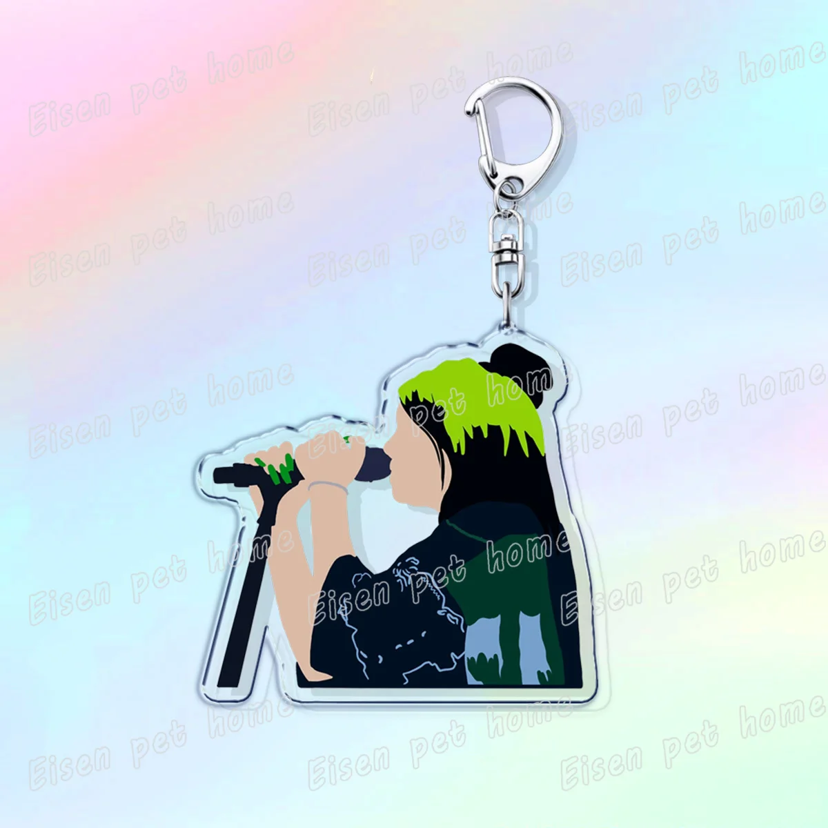 Elevate your accessory game with this trendy acrylic keychain inspired by Billie Eilish. Featuring vibrant designs that capture the essence of modern pop culture, this keychain is both stylish and practical. With its durable construction and high-quality printing, it adds a pop of personality to your keys or bags. The lightweight design features a sturdy lobster clasp for easy attachment, making it the perfect gift for friends and family on any occasion. Imagine showcasing your unique style while expressing your love for Billie with this eye-catching accessory.