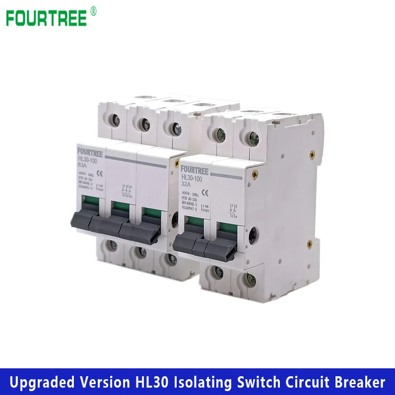 The HL30-100 isolating circuit breaker offers robust power distribution and control for AC circuits with a frequency of 50/60Hz, supporting rated voltages of 230/400V and currents of 32A, 40A, 63A, 80A, and up to 100A. This versatile device features configurations of up to four poles (1P, 2P, 3P, 4P), with a rated short-time withstand current of 12In for 1 second and making capacity of 20In for 0.1 seconds. The rated limited short-circuit current stands at 20kA, ensuring high reliability with 10,000 operational cycles. Compliant with IEC60947.3 standards, it’s suitable for both household and industrial applications.