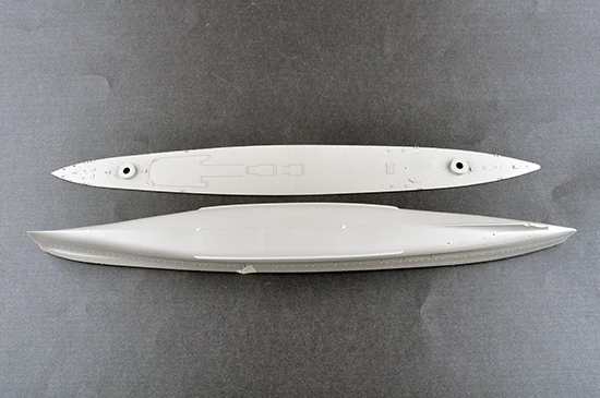 - The hull features two-directional slide molds for accuracy and ease of assembly, with a length of 548.5mm and a beam of 65.6mm for a commanding model size.