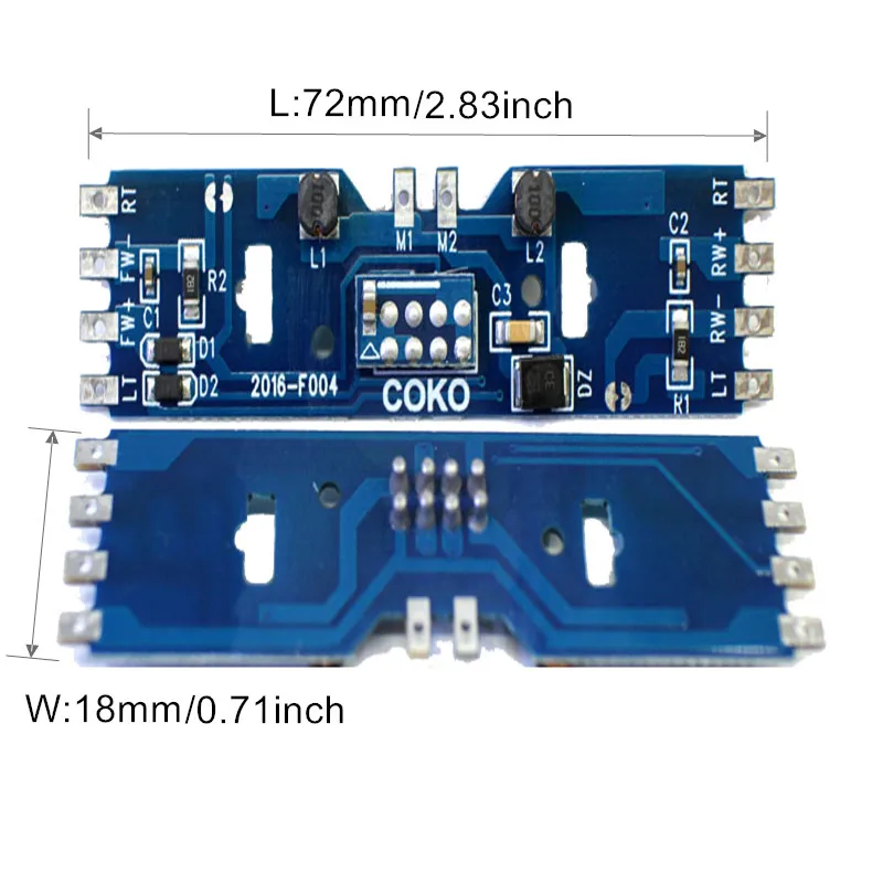 - This compact PCB measures 72mm by 18mm, perfectly suited for HO scale model trains at a 1:87 ratio, ensuring seamless fit and optimal electrical performance within the chassis.
