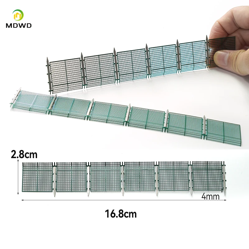 - The fencing panels are approximately 16.8 centimeters long, 2.8 centimeters high, and 4 millimeters thick, perfectly scaled at 1:87 for model train layouts.