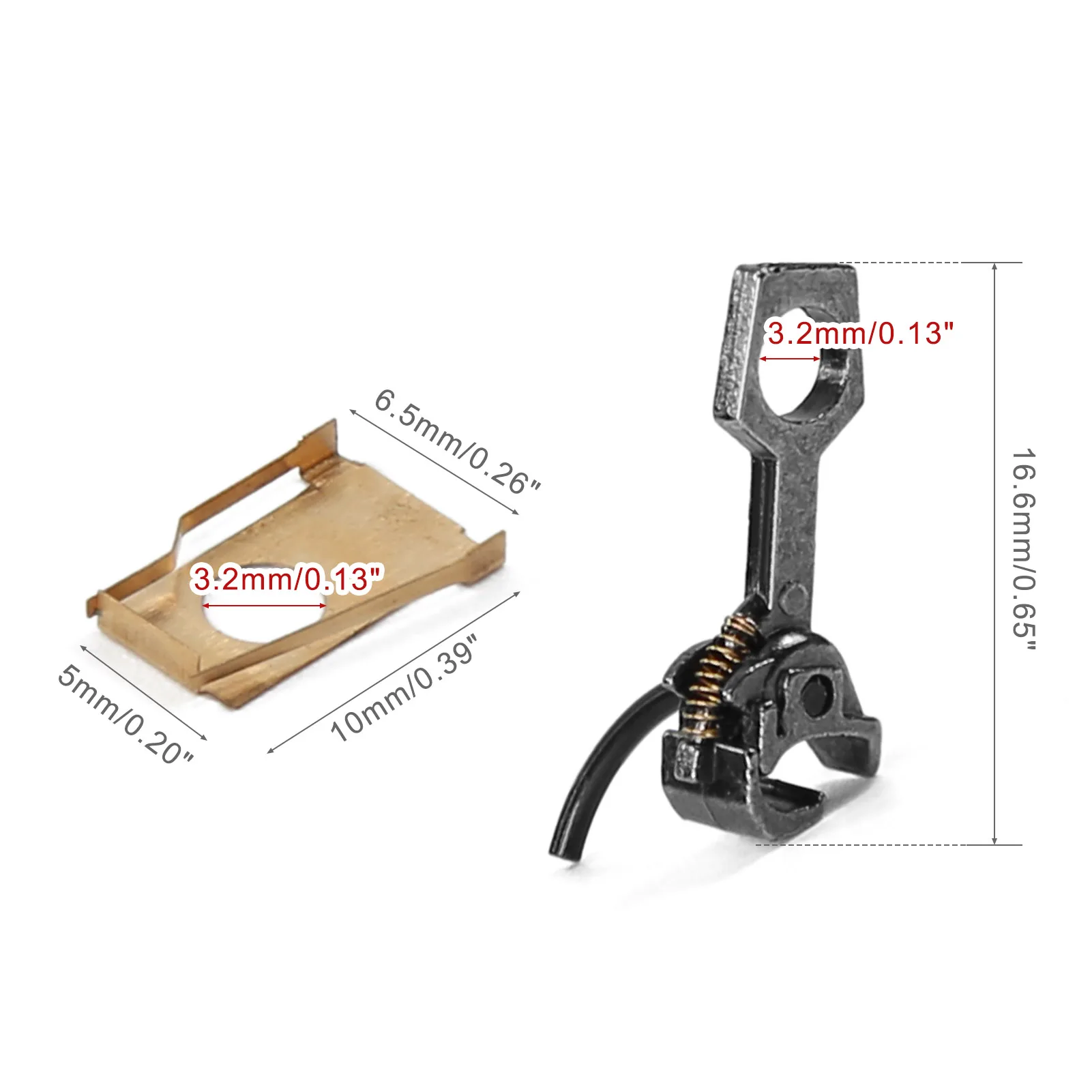 - The compact, rectangular base features a curved arm, designed for precise coupling and easy installation using included golden washers for secure attachment.