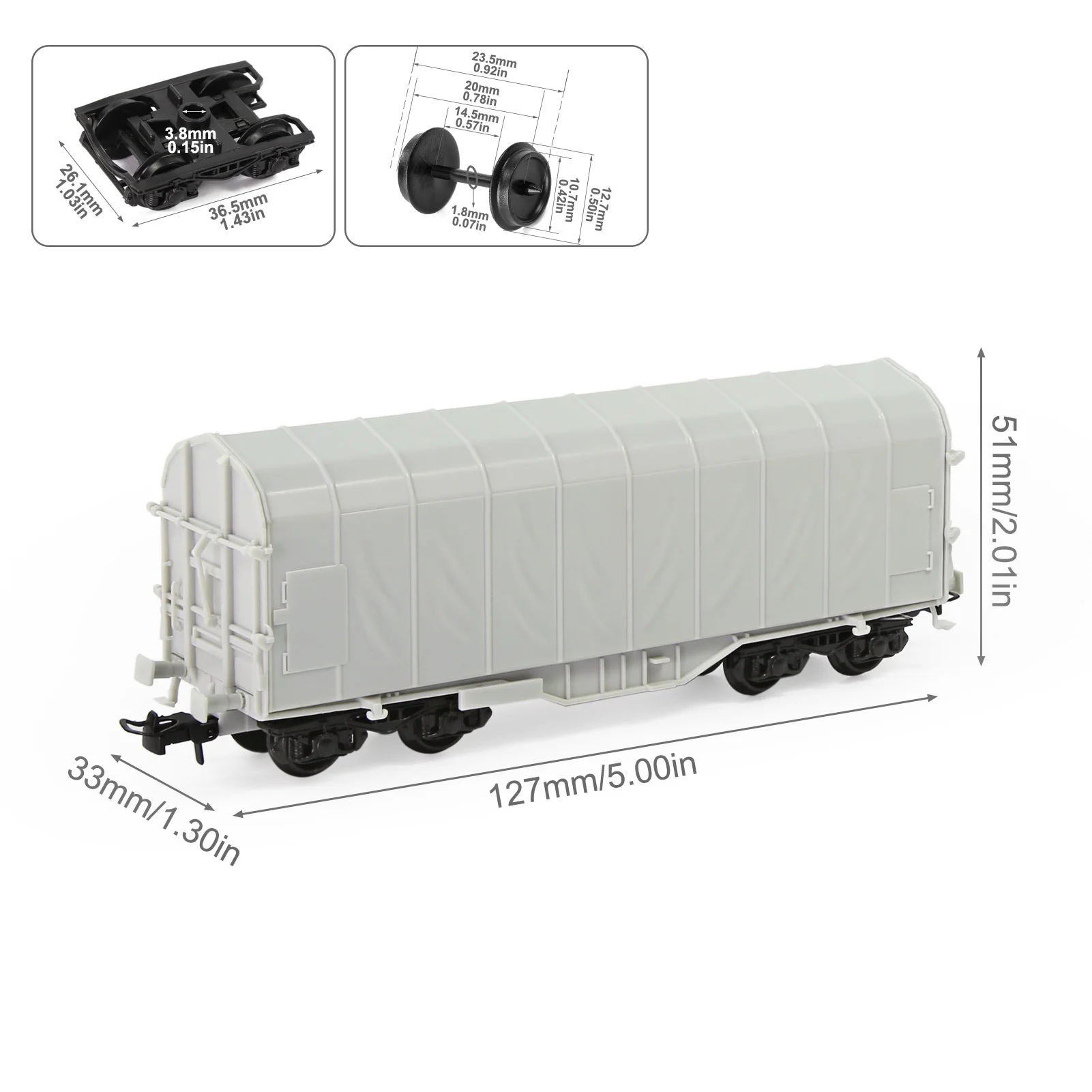 - It includes black-painted wheelsets and undercarriage, precisely mimicking real railcar components for added realism and durability.