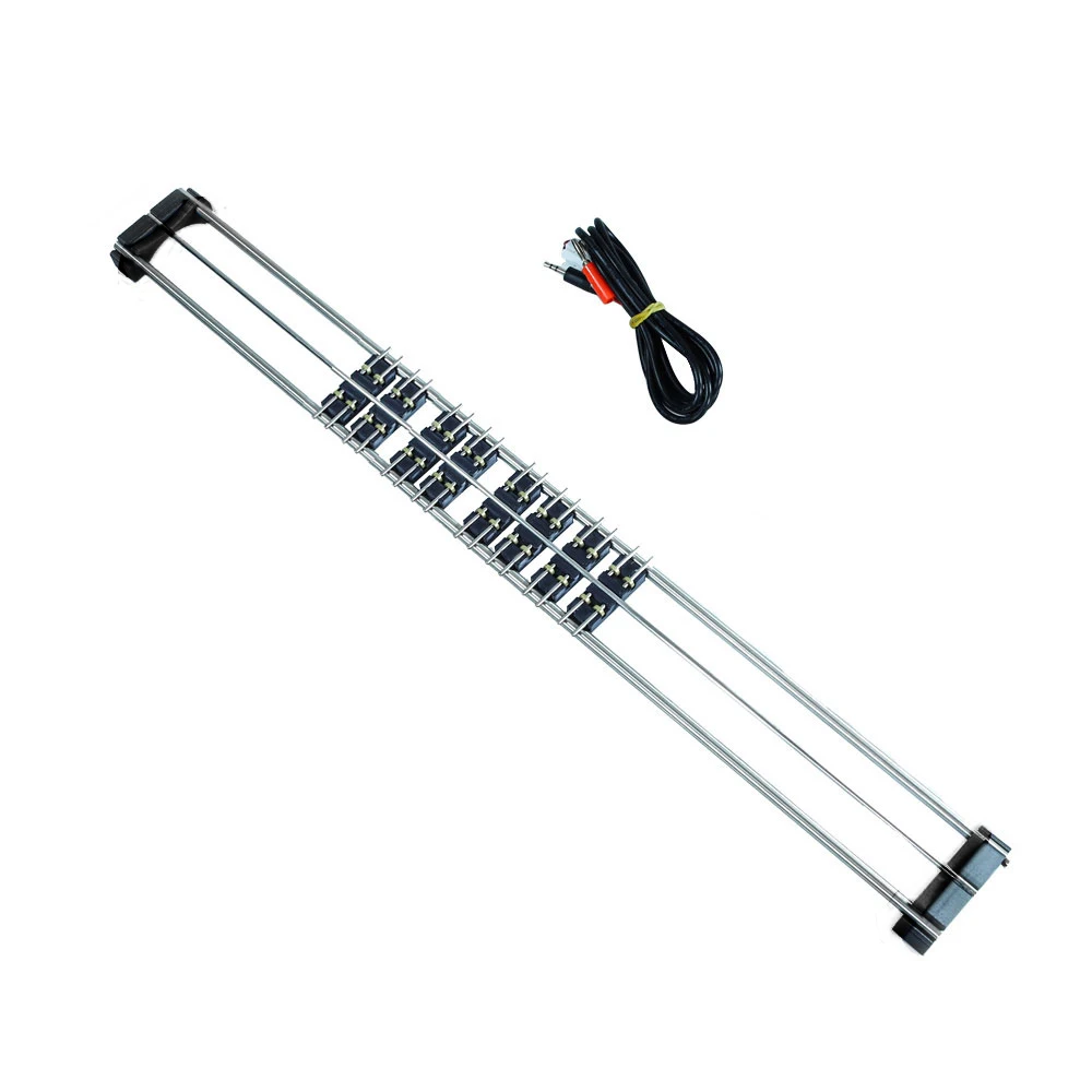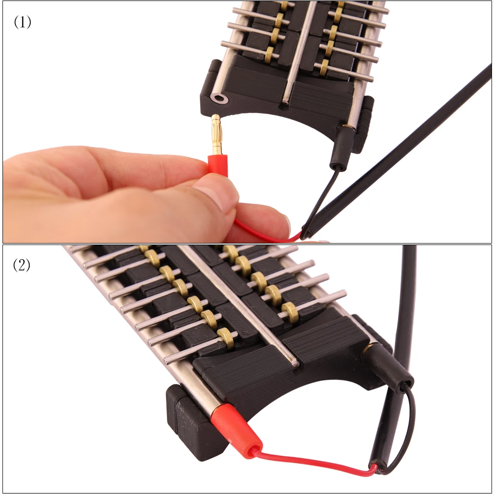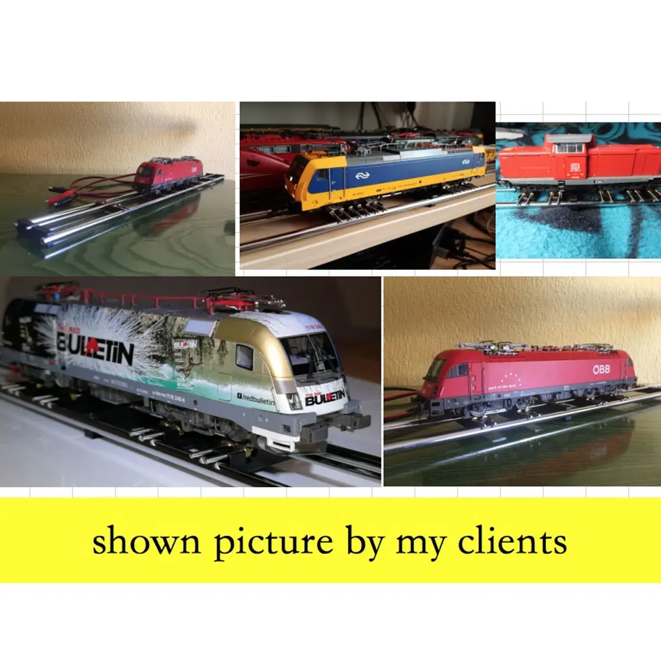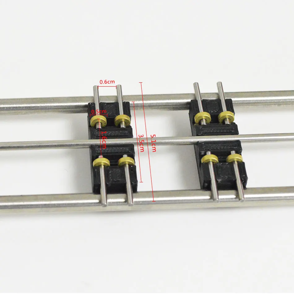 This HO Scale 1:87 model train treadmill measures 50cm in length with a track width of approximately 16.5-17mm, featuring 8 pairs of wheels on a precision-stable track bearing system. Constructed with firmware-controlled 3D printed components, a solid 304 stainless steel shaft, and Japanese copper alloy oil bearings, it ensures durability and delicate rotation. The upgraded design incorporates gold-plated banana plugs and precision-welded stainless steel shafts to minimize current loss and enhance stability. The copper-based copper alloy bearings protect the metal wheels from wear, while hardened steel pins increase durability. Ideal for model railway enthusiasts, it supports easy modular connections, offering a reliable, high-precision testing platform for HO scale trains.