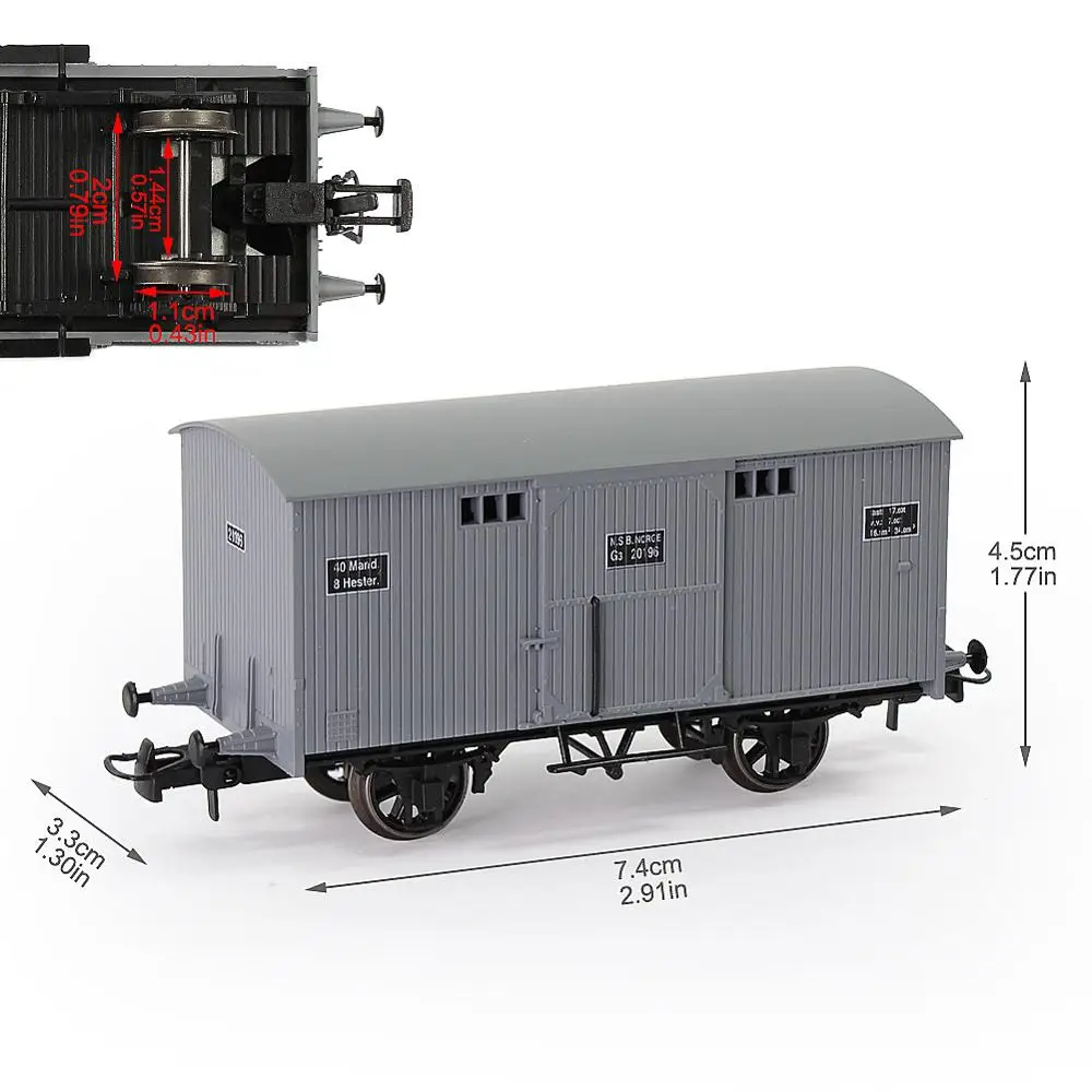 - This set includes three 20-foot freight cars, scaled at 1:87, crafted from durable plastic and metal for authenticity and longevity in display or operation.