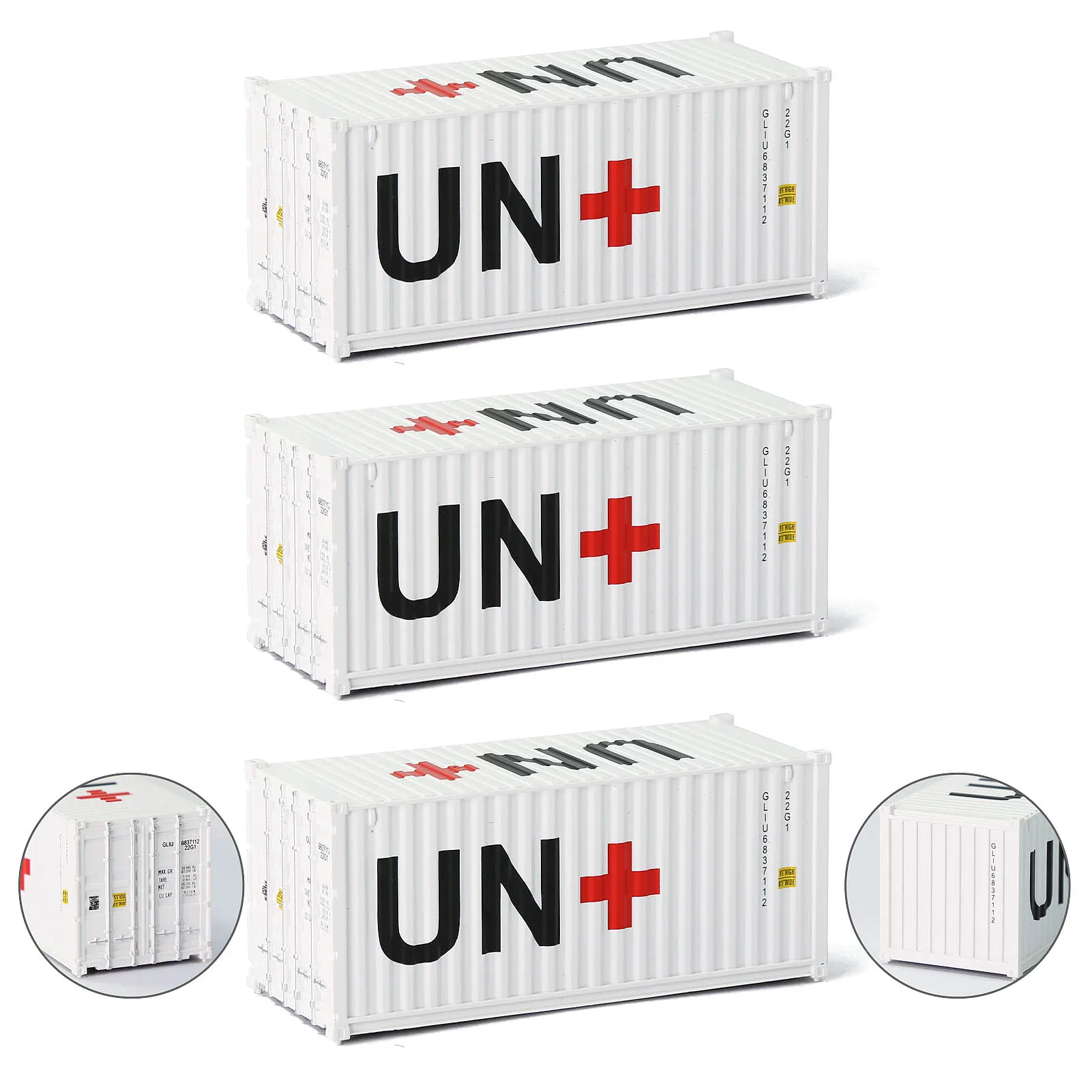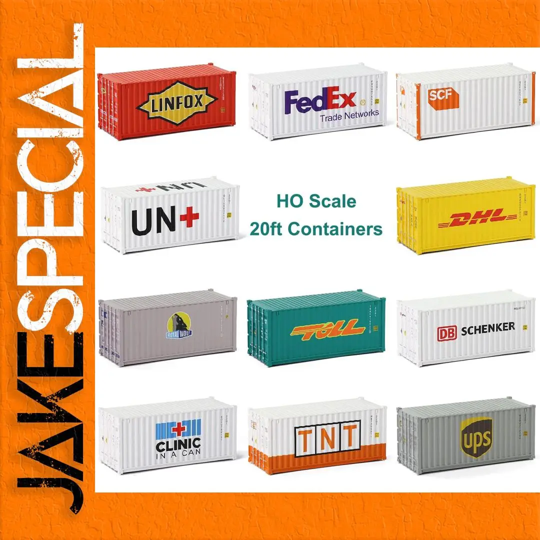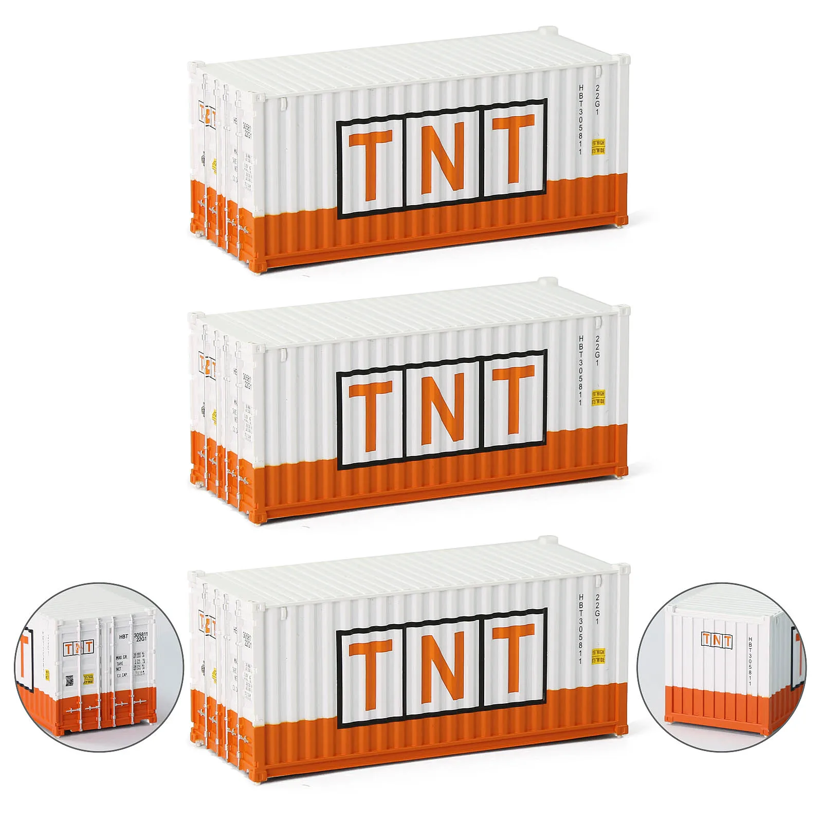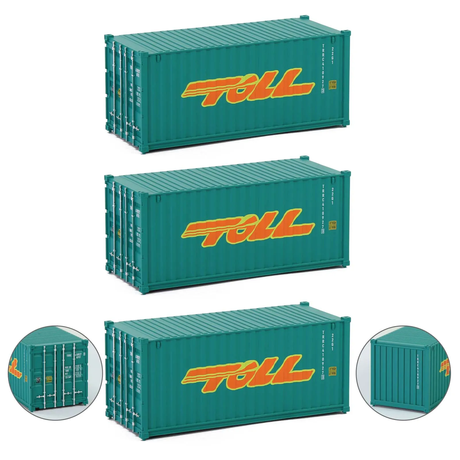 Enhance your HO scale layout with this set of three 20ft shipping containers, each measuring approximately 7cm x 2.8cm x 3cm and crafted from durable plastic and ABS. Designed to faithfully replicate real cargo boxes, these containers are perfect for realistic transportation scenes in 1:87 scale. The package offers 56 distinct styles, allowing you to select the most fitting branding and colors such as red, white, yellow, green, and grey with detailed logos like DHL, FedEx, LINFOX, Royal Wolf, SCF, SCHENKER, TNT, TOLL, UN, and UPS. No packaging included—shipped securely in bubble bags—these containers are ideal for model enthusiasts aged 14 and above.