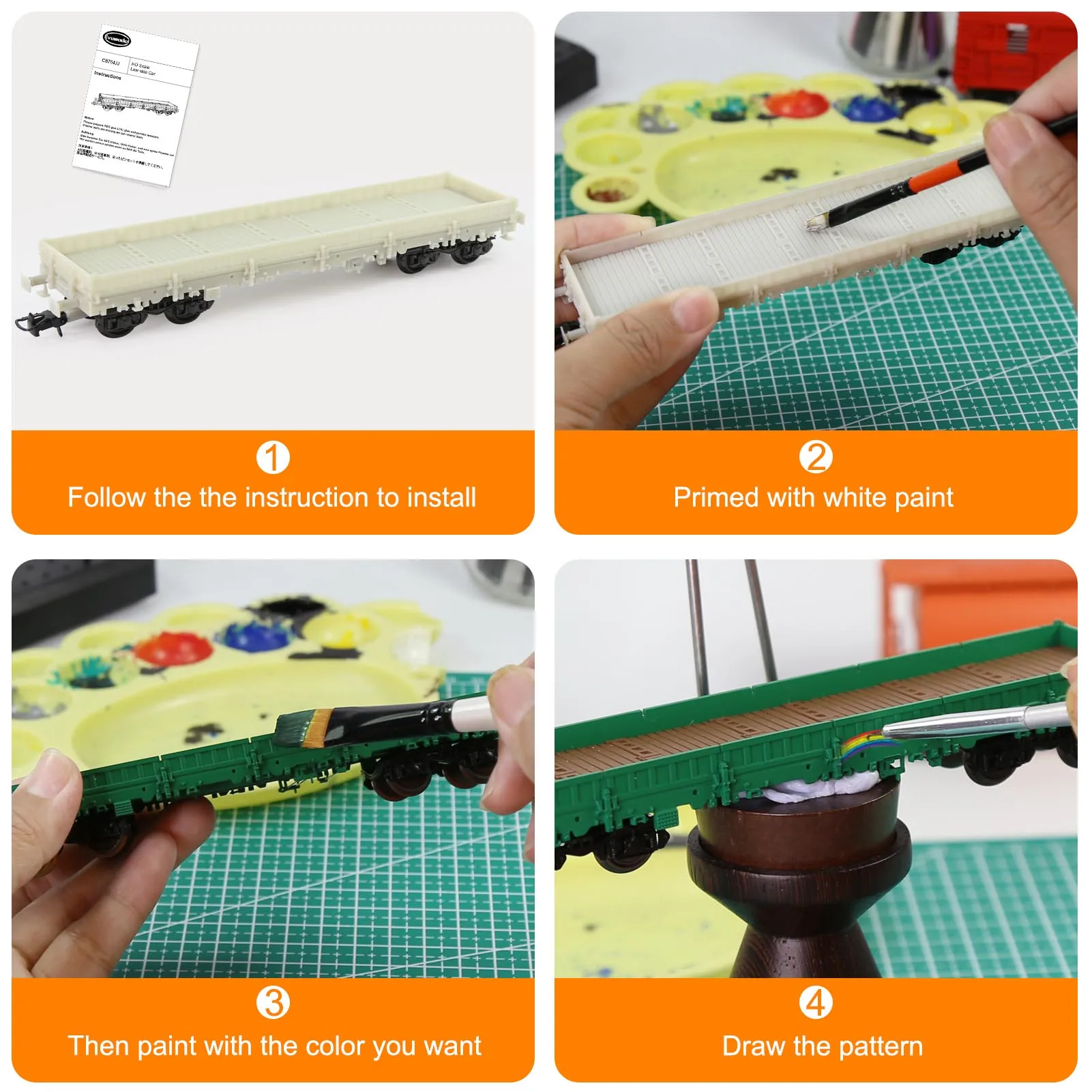 - Includes all necessary unassembled parts, such as the flat car body, side panels, stakes, and small hardware, enabling a rewarding assembly process for hobbyists.