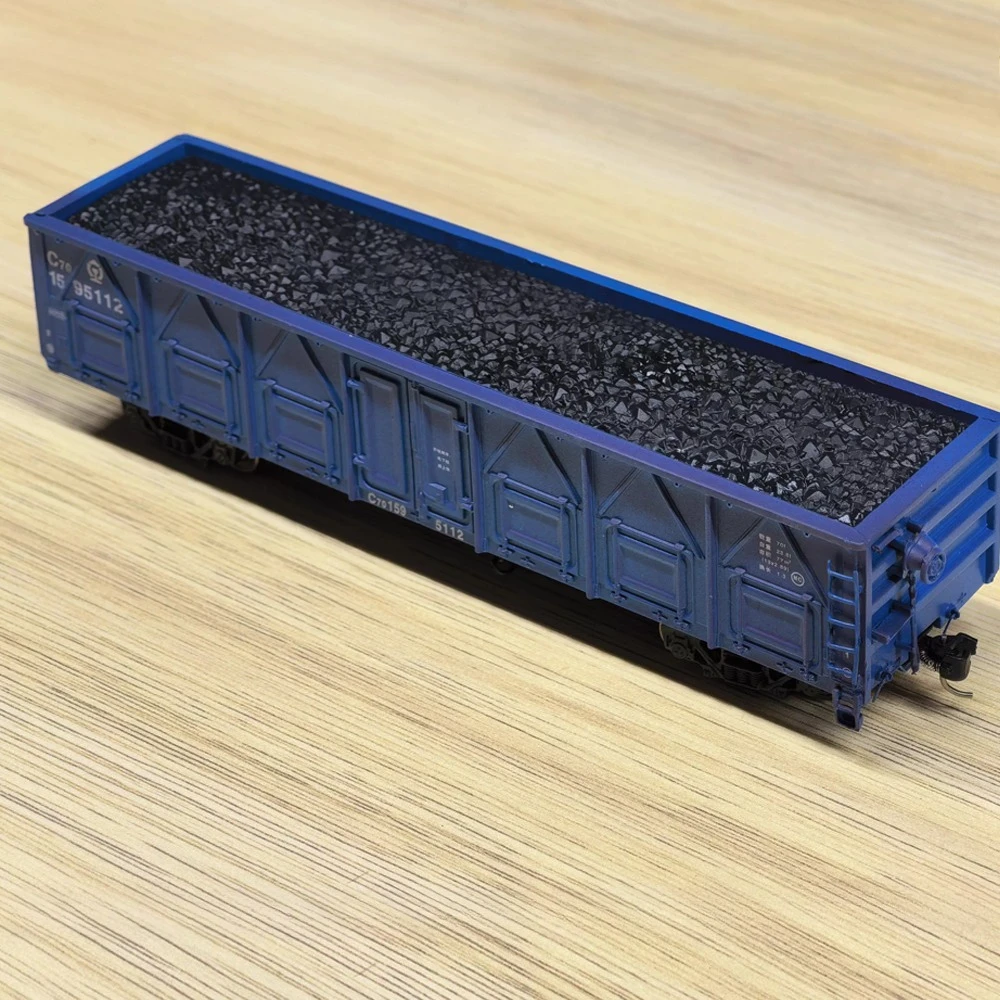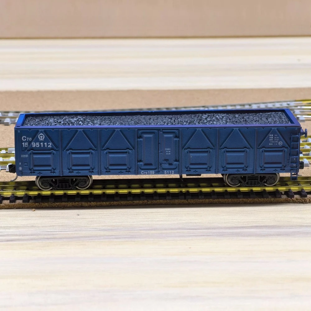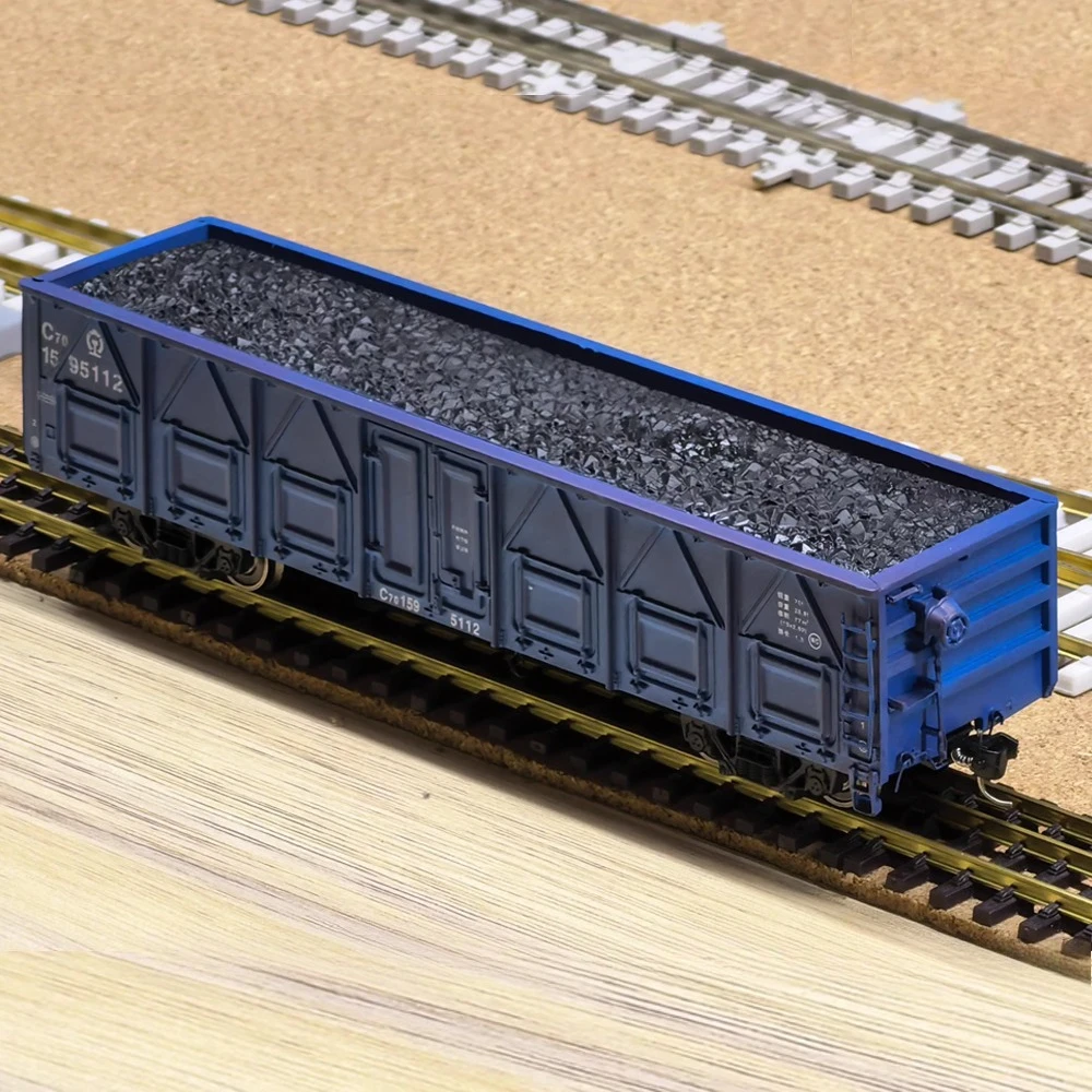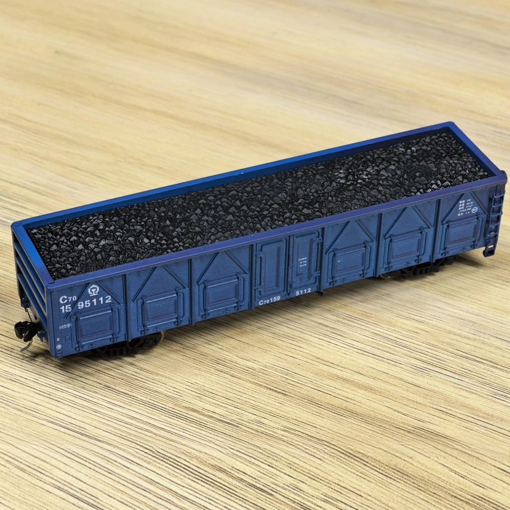 Experience the rugged realism of this HO scale (1:87) C70 coal transport open freight car, crafted from durable plastic with a weathered, dark paint finish that evokes vintage industrial charm. The model features detailed side panels with structural reinforcements, printed markings including “C70,” and an open top revealing a textured load of gravel or coal. Its undercarriage boasts dual black trucks with intricate wheels, axles, and suspension components, adding to its authenticity. Suitable for collectors and model train enthusiasts, this unisex piece offers functional design and vintage appeal, making it ideal for detailed layouts and sand table displays for those 14 years and older.
