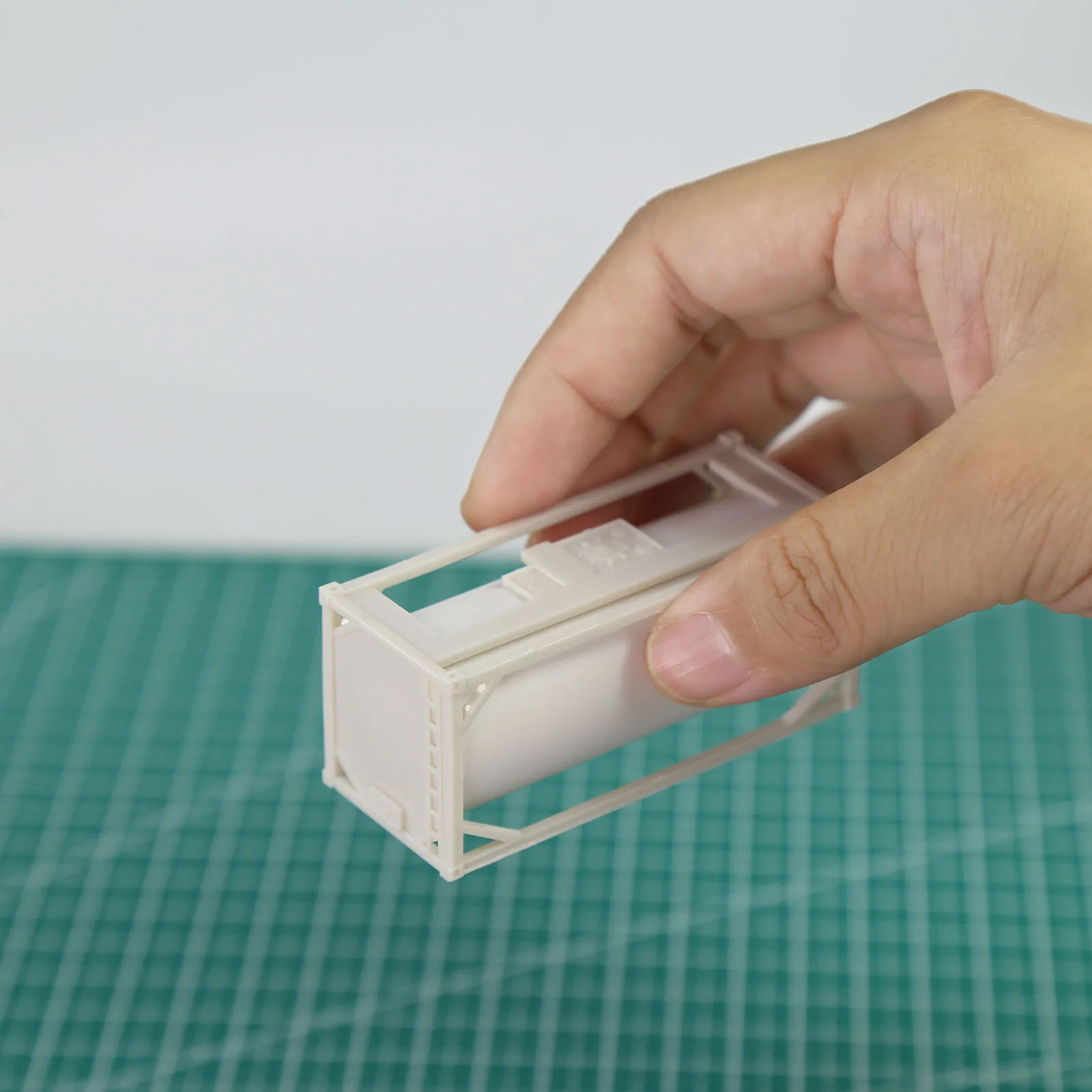 Experience the detailed craftsmanship of this set featuring two disassembled HO scale (1:87) tank containers, measuring approximately 7cm long, 3cm wide, and 2.8cm high. Crafted from durable plastic, these models mimic real intermodal ISO tanks used for transporting liquids, gases, and powders across various transport modes like trains, trucks, or ships. The smooth, cylindrical tanks are encased in intricate, grid-patterned frames that add a sense of realism and industrial authenticity. With open rectangular tops and subtle ridges, these miniature containers are perfect for enhancing your railway diorama or freight display. They offer a highly authentic visual, emphasizing realistic structural details and ready to be assembled for an impressive transportation scene.