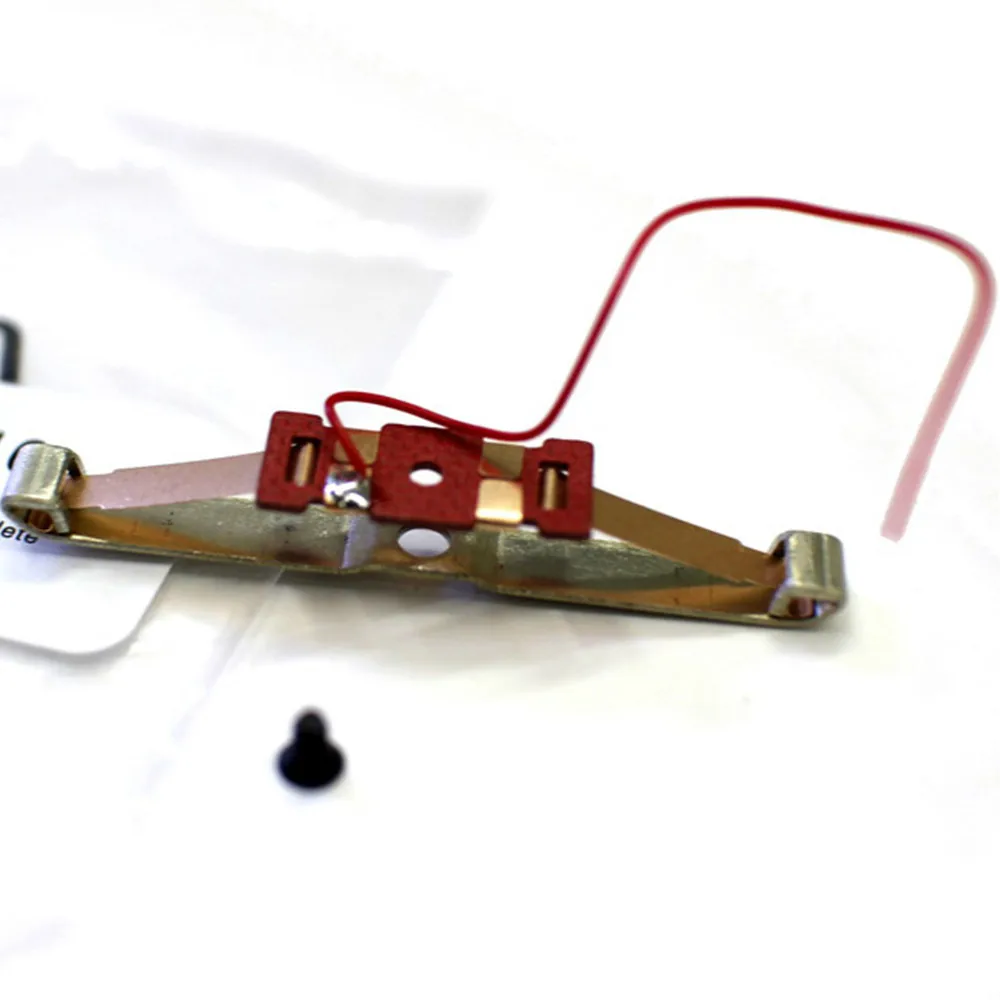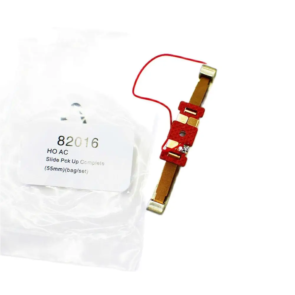 Experience the precision and durability of this this HO scale electric slide pickup, a perfect addition to elevate your model train setup. Crafted from high-quality metal with a sleek silver finish, this component measures approximately 5 centimeters in length, designed to seamlessly integrate into your locomotive. The red plastic housings at each end provide vibrant contrast and insulating protection, while the thin red wiring ensures reliable electrical connectivity. Its flat, elongated rectangular shape exemplifies minimalist industrial style, highlighting fine craftsmanship. Whether you're completing a locomotive or enhancing your railway scene, this assembly-ready accessory offers both functionality and aesthetic appeal, bringing your models to a more realistic and operational level.