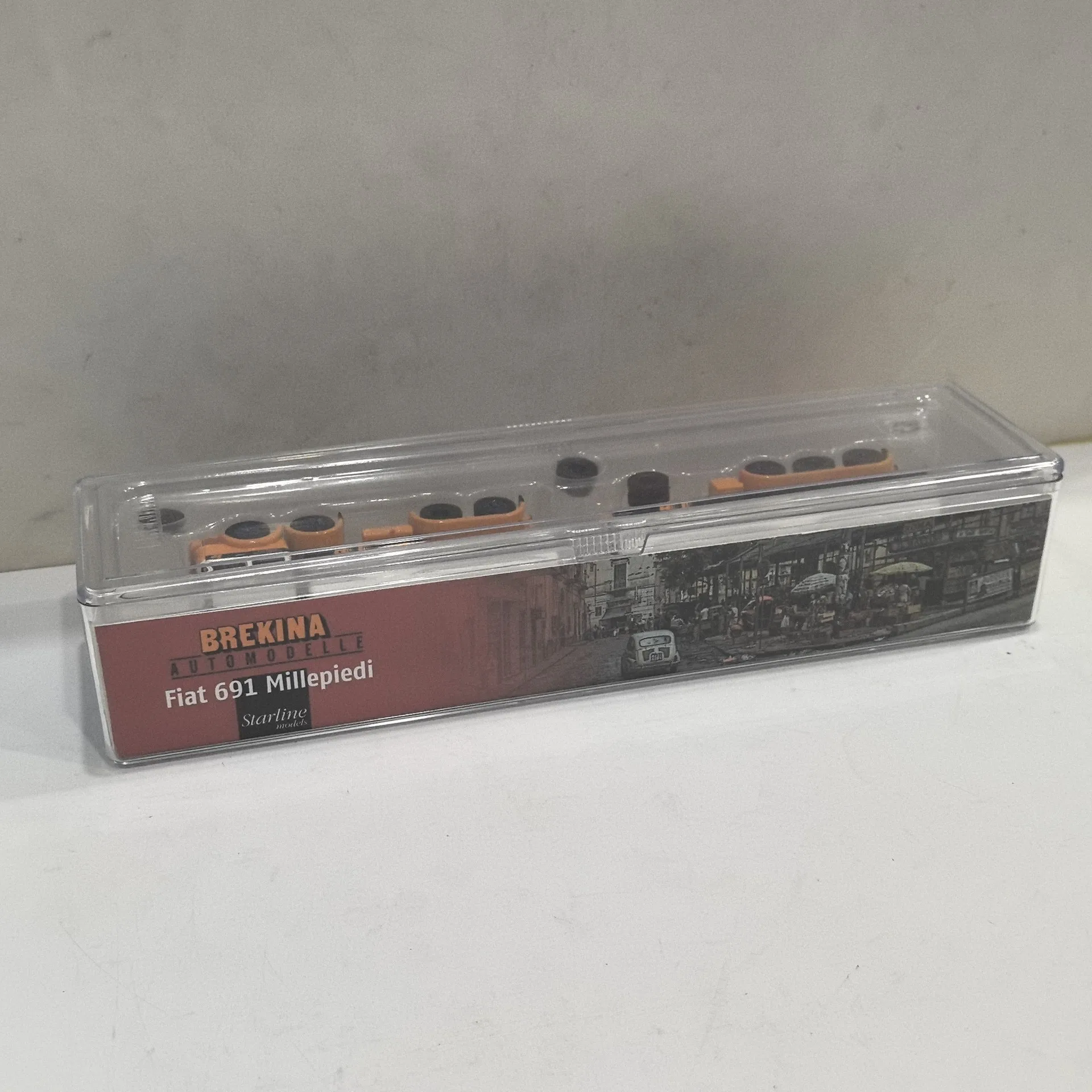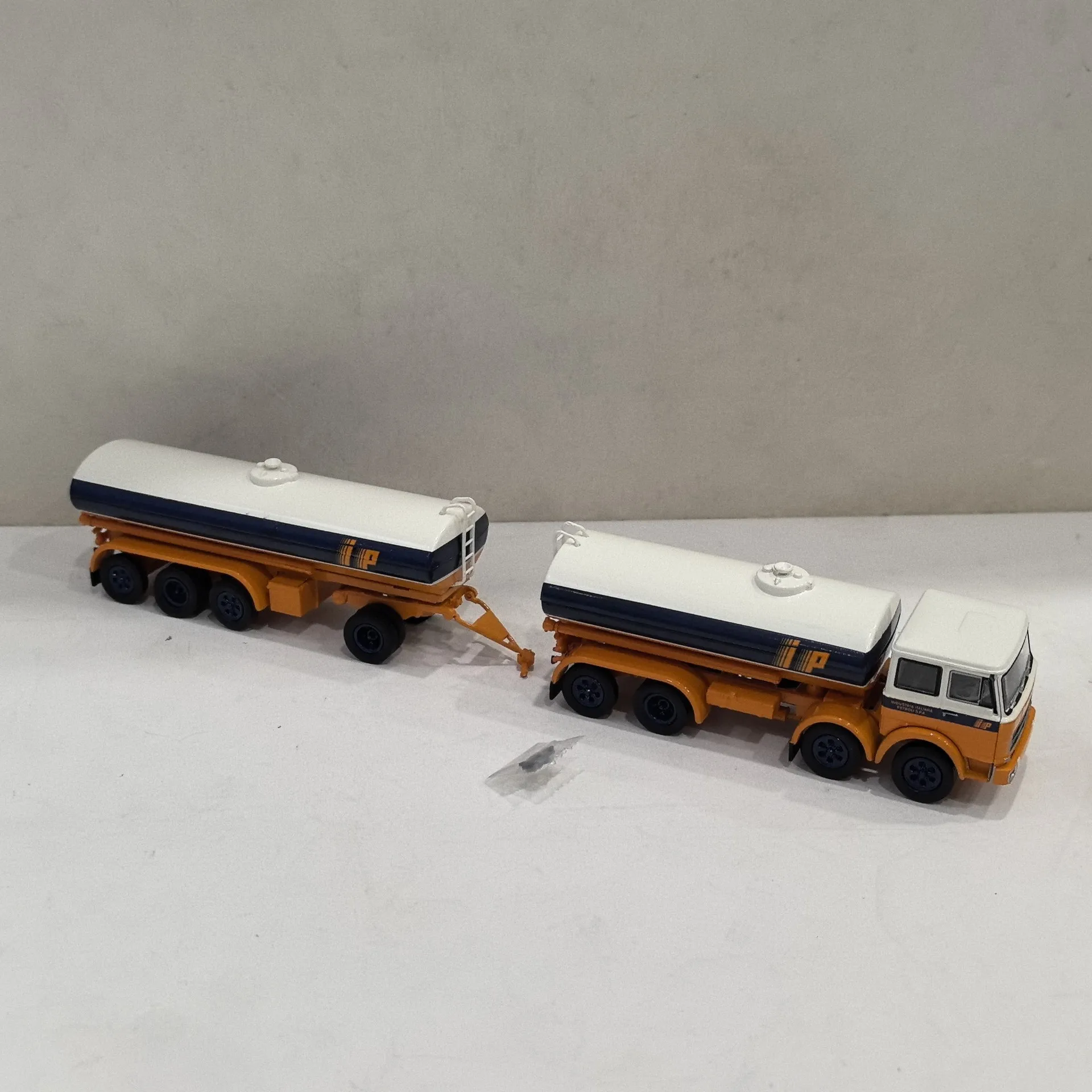 Step into the world of detailed miniatures with this this HO scale FIAT 691 Millepiedi fire water tanker. Crafted from durable plastic, it offers an authentic look with precise detailing that appeals to hobbyists and collectors alike. The model features a sleek, utilitarian design highlighted by its white cylindrical tank with rounded ends, complemented by a warm orange-brown chassis and chassis base. The bold black stripe running along the tank adds a striking visual accent. Its functional, detailed black wheels with matching rims provide smooth movement, enhancing realism. Compact yet impressive, this model captures the robust presence of emergency vehicles, making it a perfect decorative addition or collectible for display. A true reflection of fine craftsmanship and craftsmanship.