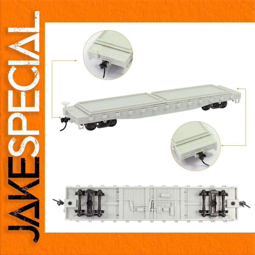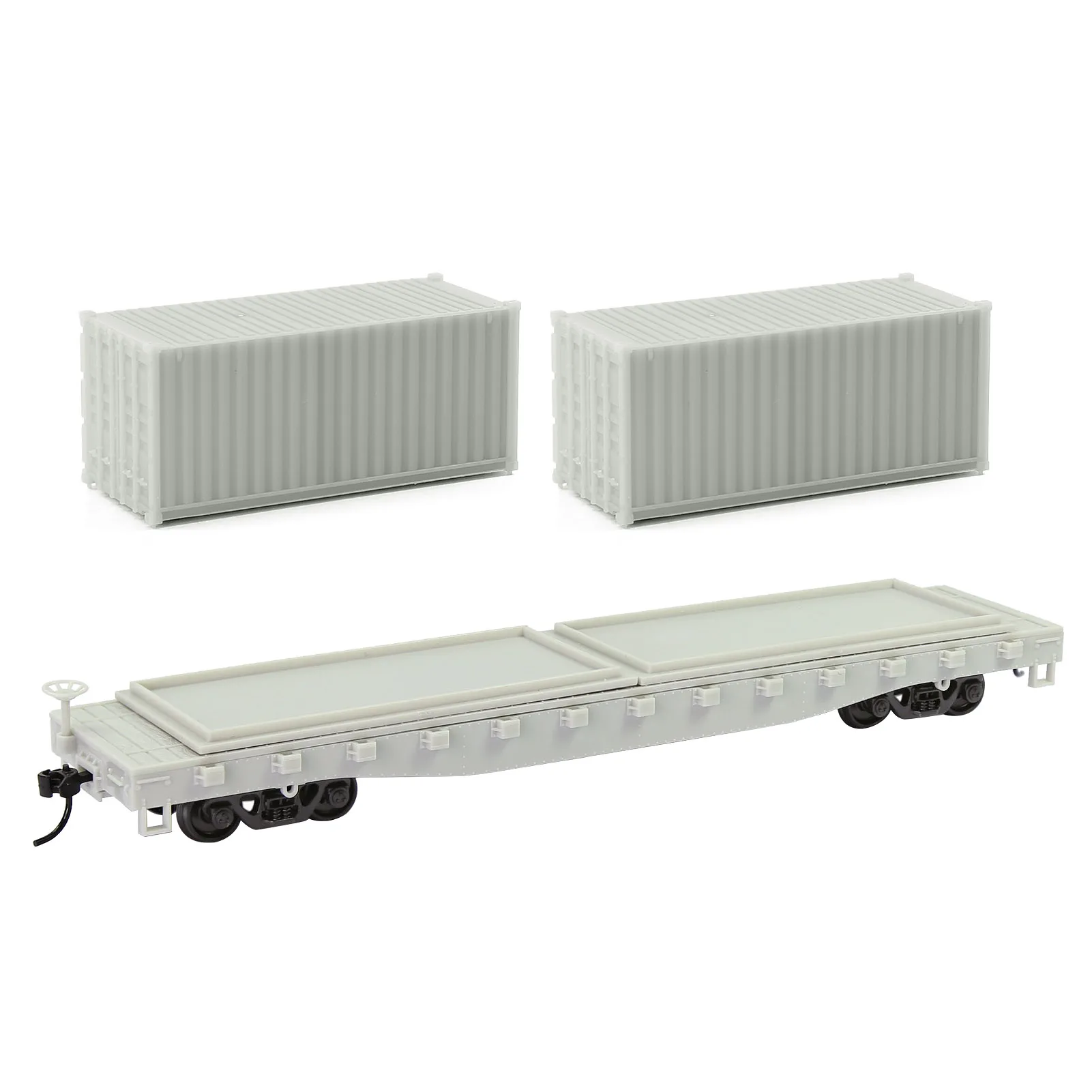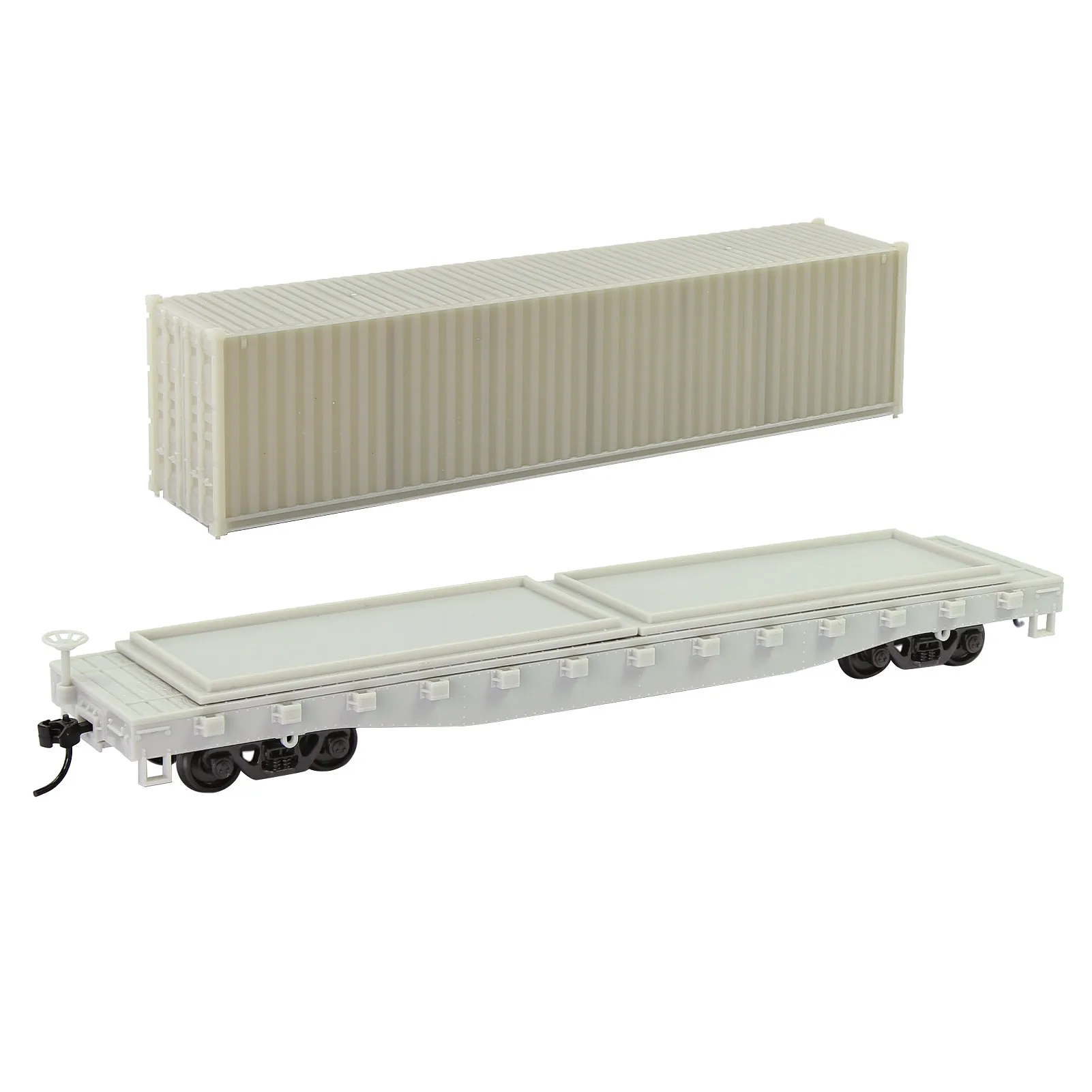 Experience the thrill of creating your own train layout with this meticulously designed HO scale flat car. Crafted from durable ABS plastic, this model measures proportionally to fit 52-foot containers seamlessly, replicating real-world rail transport. Its sleek, rectangular shape features a smooth, white surface with subtle raised edges along the sides for added structural authenticity. The black wheel assemblies with visible axles bring a striking contrast, highlighting detailed, realistic features. Perfect for assembly and customization, you can choose to build it as just the bare flat car, or add a 40-foot or two 20-foot blank containers for a more dynamic display. This model appeals to train enthusiasts aged 14+, offering a blend of simplicity and realism for your collection or diorama.