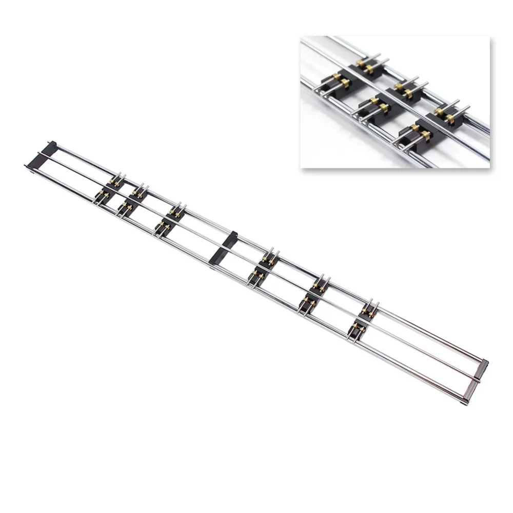 Enhance your HO scale model railway with this set of 2 roller trolleys, crafted from durable 304 stainless steel and POM. Designed at a 1:87 ratio, these trolleys feature a sleek, minimalist design with a rectangular black plastic base, polished cylindrical stainless steel rods, and gold-colored bushings for a refined industrial appearance. Compatible with all types of current—AC, DC, digital, and analog—they provide a precise fit for model train layouts. Accurate dimensions, as shown in the reference image, ensure a seamless integration into your railway setup. Perfect for adding detailed realism and reliable performance to your miniature railway system.