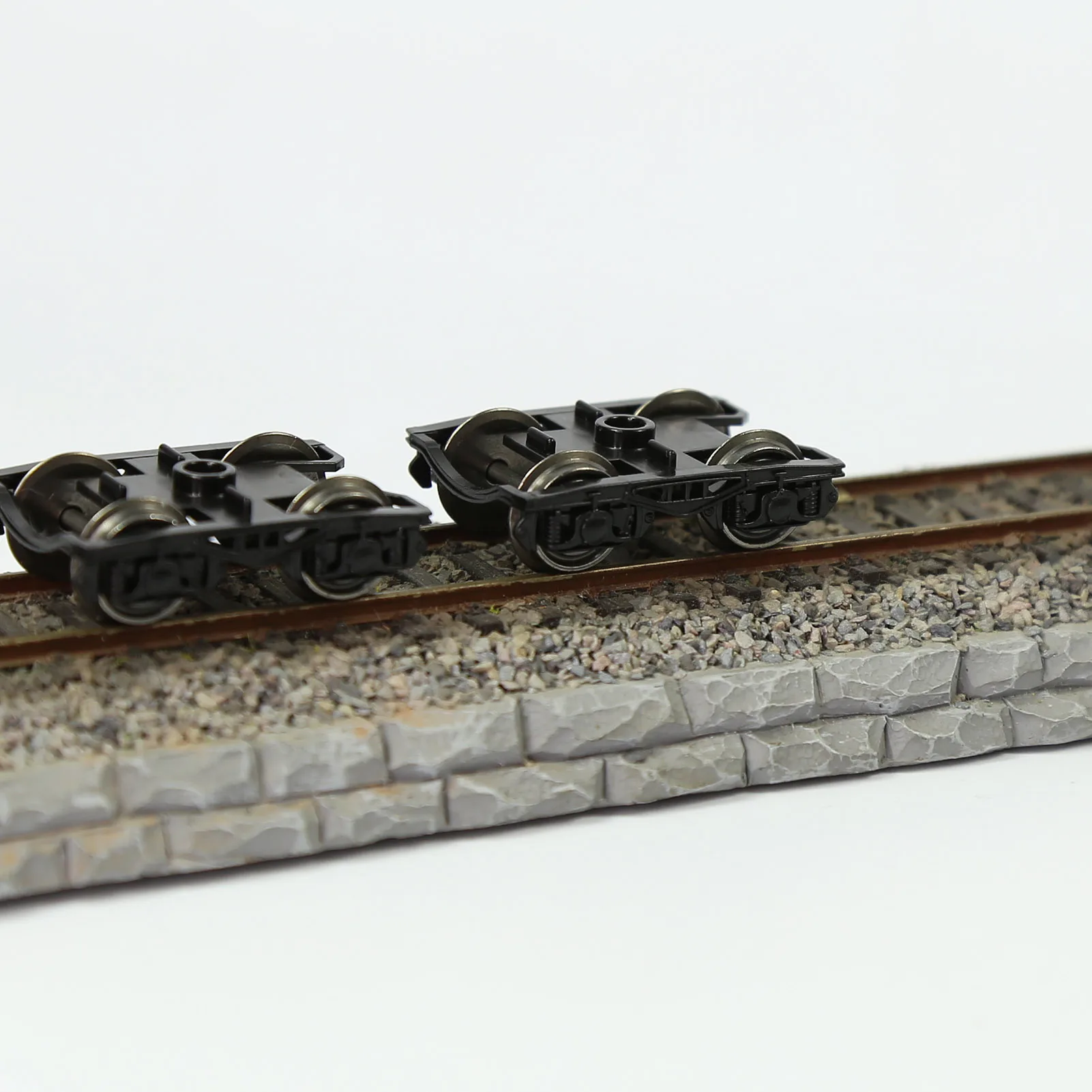 - Constructed with a black plastic frame and metal DC wheelsets, these bogies are designed for stable and smooth operation on typical railway tracks without magnetic effects.