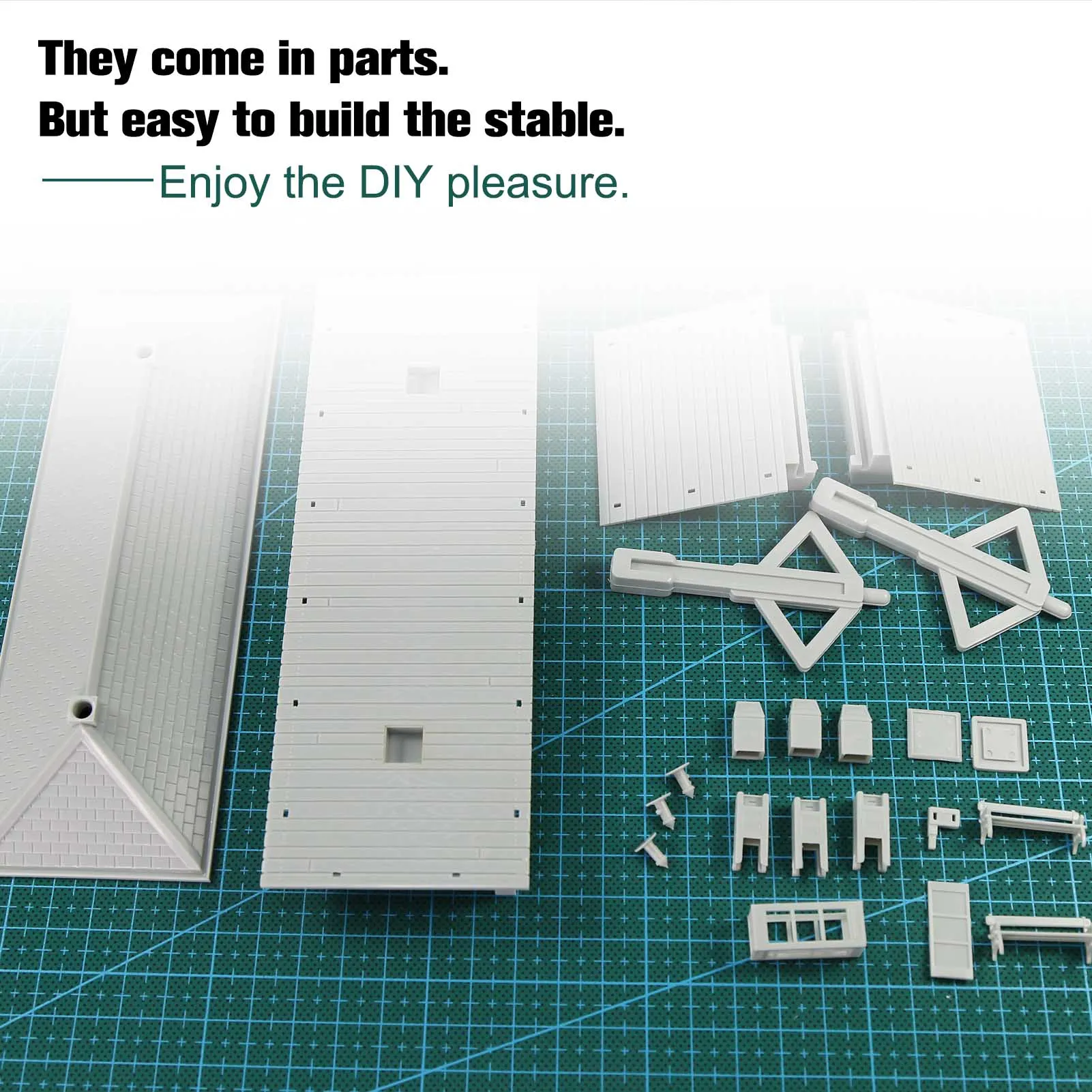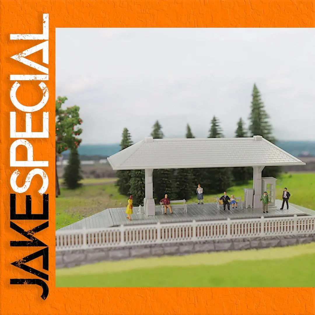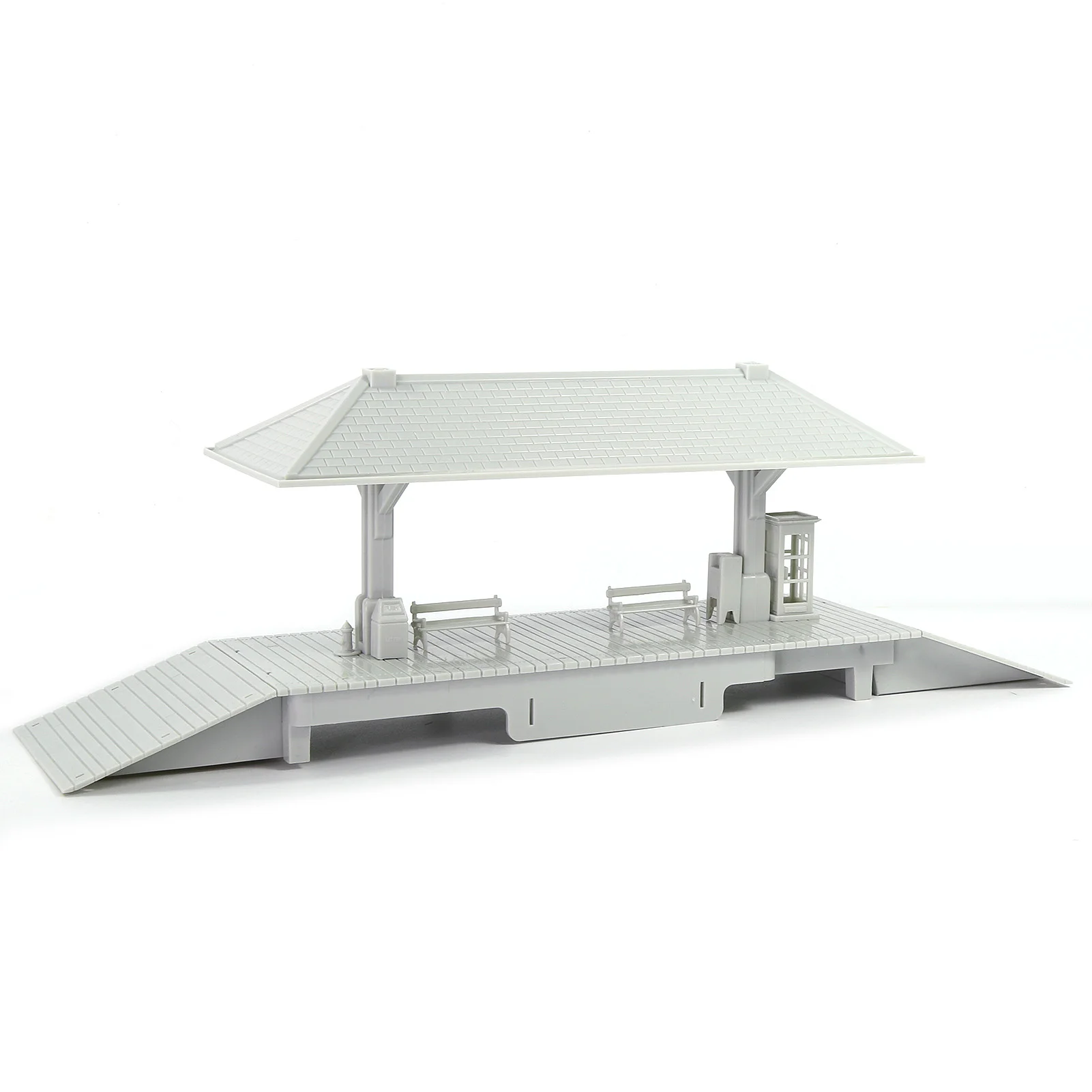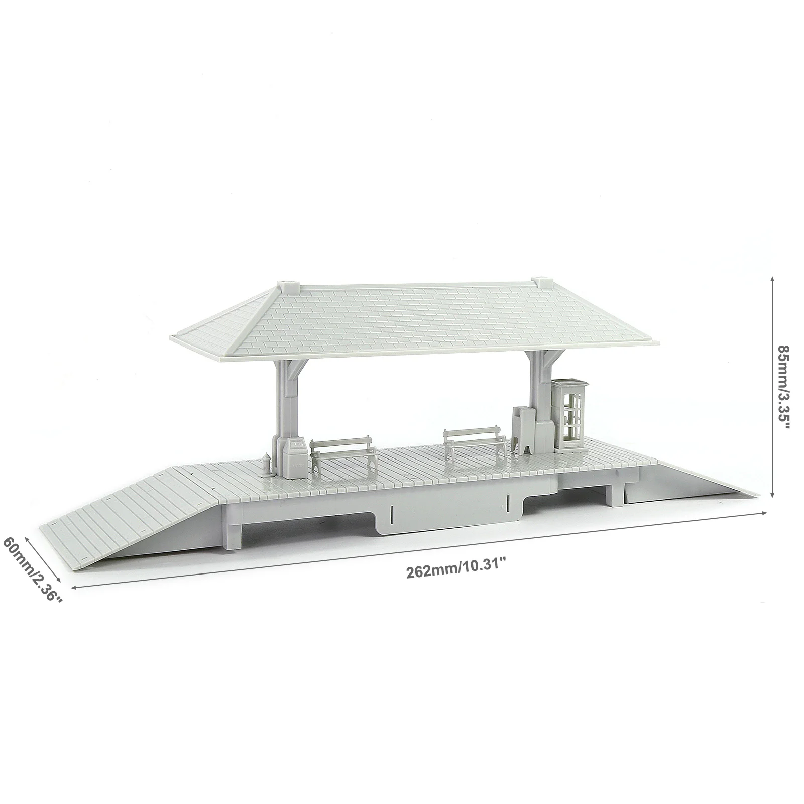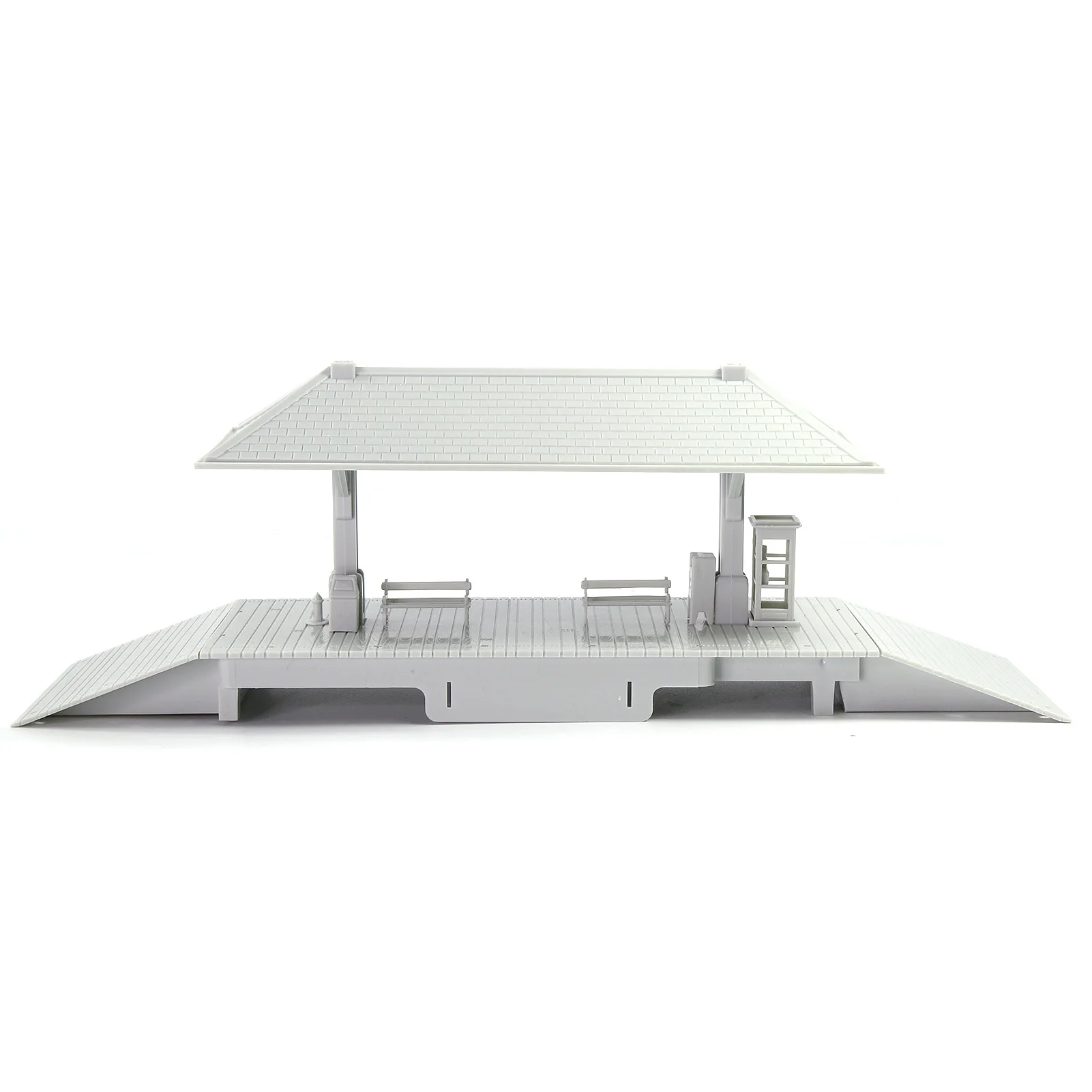 This HO scale 1:87 model train station platform kit by Evemodel offers a realistic, traditional design with a textured shingled roof supported by four elegant classical columns. The platform features detailed textured wooden planks and intricate decorative railings, perfect for creating vintage or nostalgic miniature scenes. Unpainted and disassembled, made of durable plastic, it measures approximately as shown in the images, allowing for customization and easy assembly. Ideal for enhancing your model layout, this kit is suitable for hobbyists aged 18 and above, providing a charming, detailed touch to your train scenery. Figures are not included.