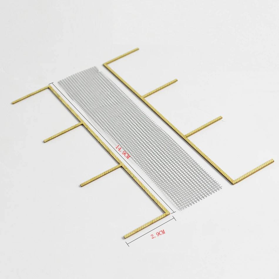 Transform your model train layout with this HO Scale 1:87 Railroad Railing Train Fence Guardrail by TERAYSUN. Crafted from durable ABS plastic, this modular guardrail features an intricate grid-like mesh design that mimics a realistic fencing appearance. With dimensions of 14.9 cm in length and 2.9 cm in width, it fits seamlessly into any diorama, enhancing the authenticity of your railroad scenes. The striking silver mesh paired with golden support beams creates a visually appealing contrast. As you incorporate this guardrail into your environment, imagine the lifelike details it adds, making your setup more engaging for viewers and enthusiasts alike.