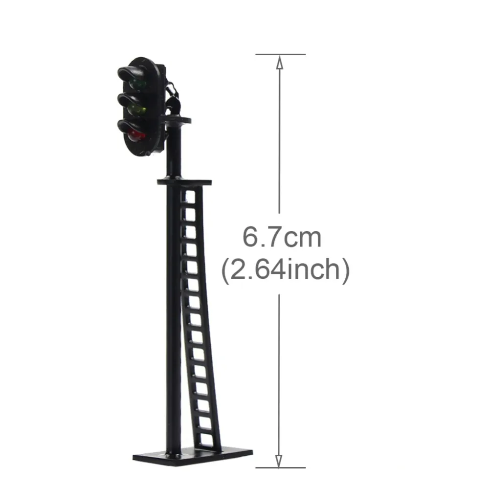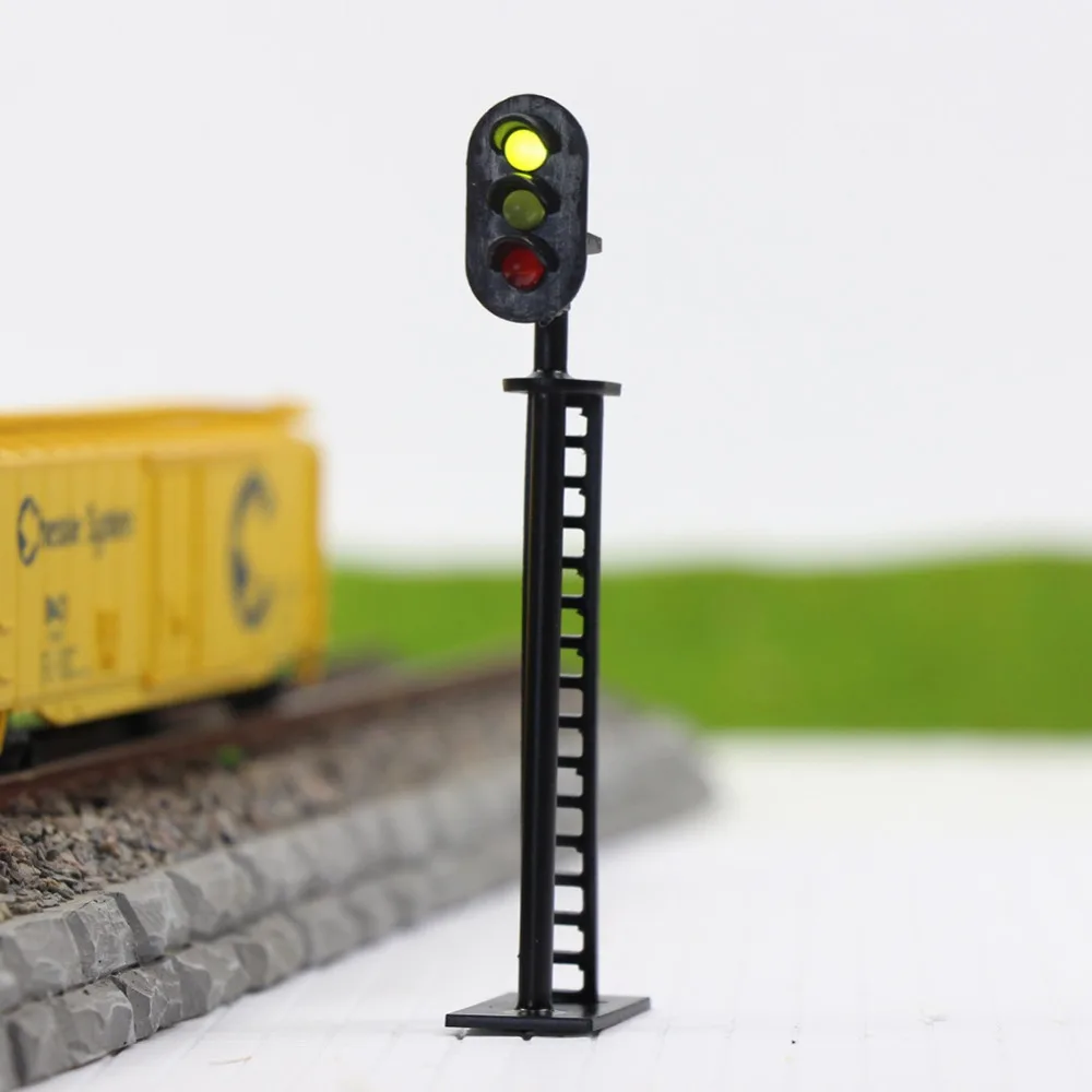 Imagine enhancing your model railway layout with these precisely crafted HO scale signals by Evemodel. Standing at 6.5 centimeters tall, they feature sleek black brass poles and durable plastic housings, capturing the authentic look of real railway signals. The three vertically aligned LED lights — green, yellow, and red — are housed within curved, transparent covers that make the lights stand out vividly. Subtle ladder-like details add realism without cluttering the design. These signals are designed to be plug-and-play, with pre-soldered resistors for seamless integration into 12V to 18V power supplies. Whether you're creating a busy station or a quiet country line, these signals deliver functional authenticity and aesthetic excellence in your HO layout.
