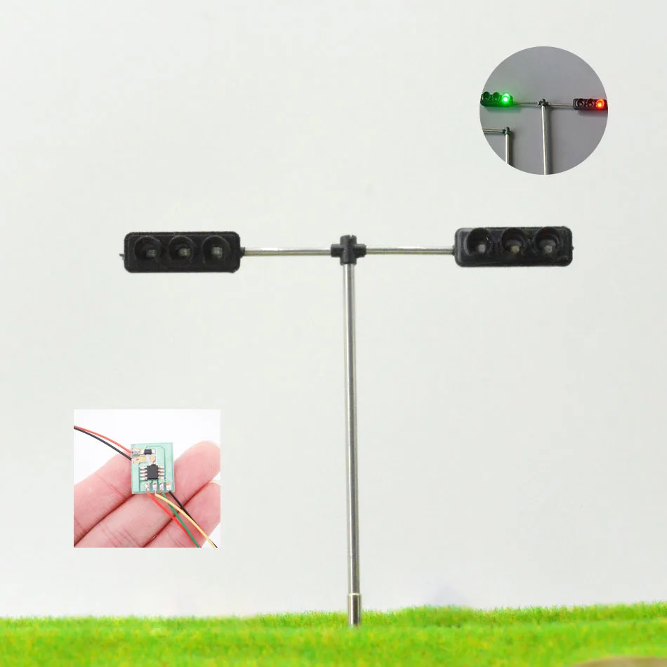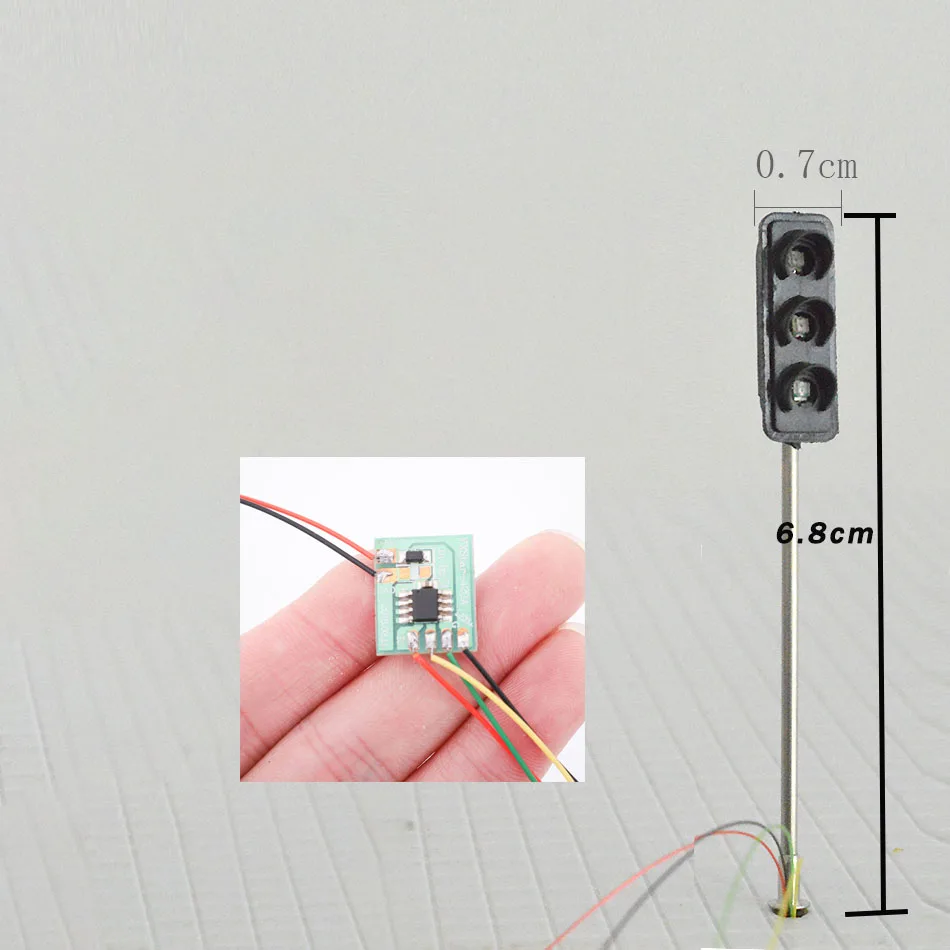 Imagine bringing your model railway or diorama to life with this highly detailed traffic light set. Designed at 1:87 scale, it features miniature housings crafted from durable metal and plastic, painted in sleek dark tones. The vibrant lenses emit bright red and green illumination, perfectly mimicking real traffic signals. The set includes a miniature traffic light on a shiny metallic pole, along with an electronic controller board to operate the lights. Easy to integrate into your projects, these components are suitable for DIY enthusiasts aged 14 and above. Whether you're creating a bustling city scene or an intricate railway junction, this set offers realistic detail and authentic appearance to elevate your model environment.
