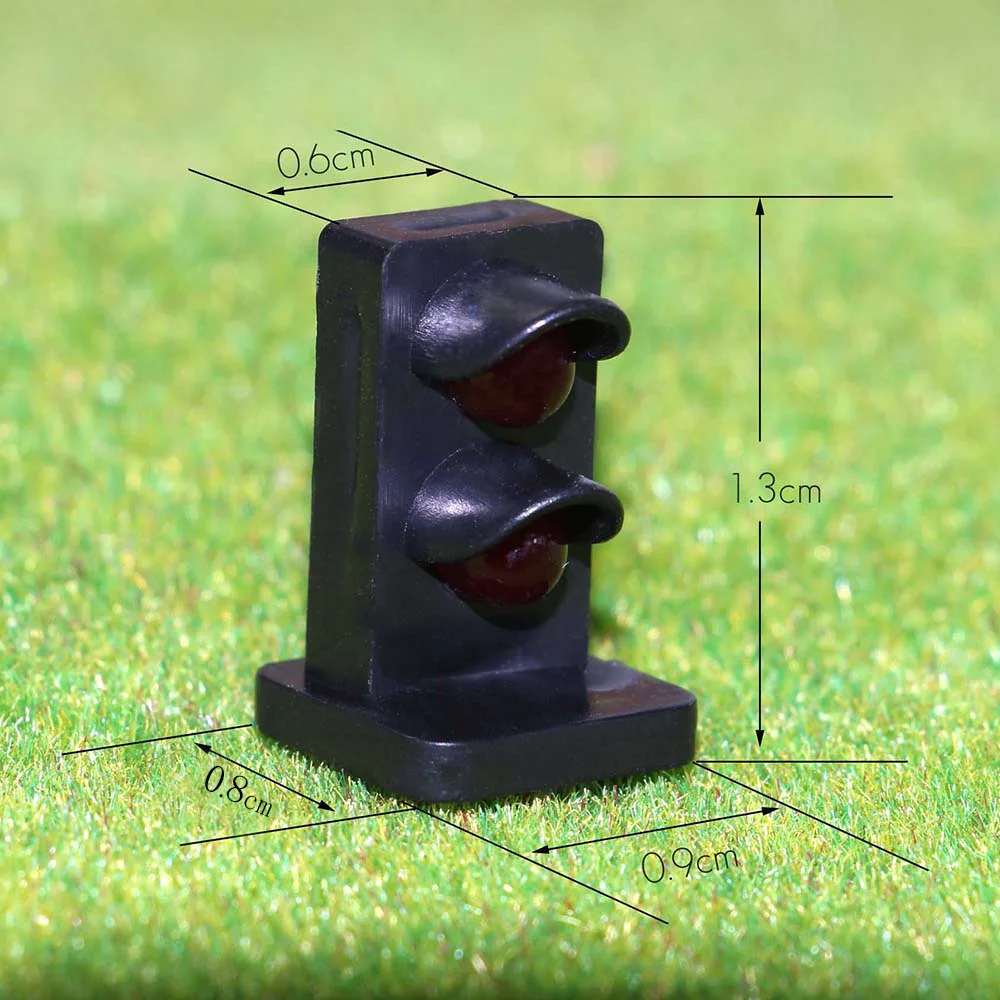 Enhance your HO scale model railway with this set of five red LED dwarf signals, designed at a 1:87 scale for realistic outdoor appearance. Each compact signal features a sleek black rectangular housing with a glossy finish and two vertically stacked, domed red LEDs that emit a bright, vivid glow. The signals are pre-wired with resistors for 9V to 12V AC or DC operation, drawing 70mA current, ensuring easy integration into your layout. Made from durable plastic (PC material), these signals add striking visual cues to your railway scene, combining functional accuracy with a realistic aesthetic, perfect for creating authentic railway environments.