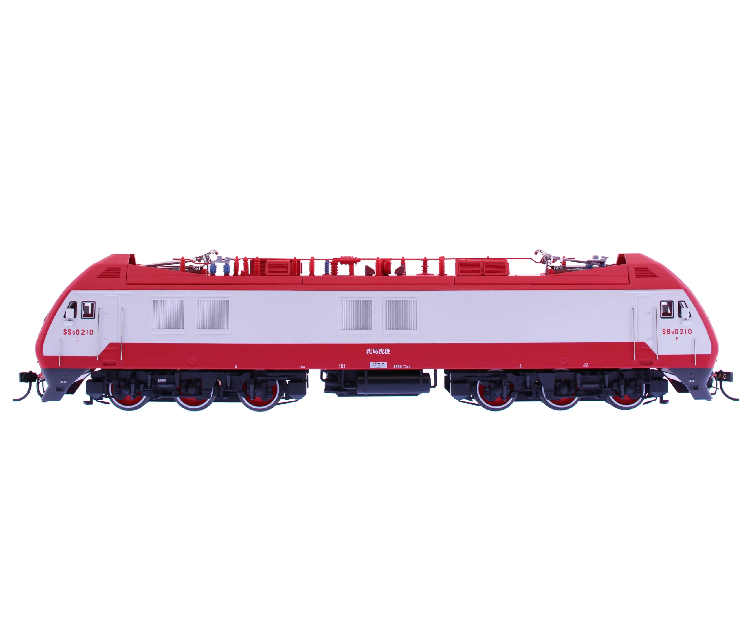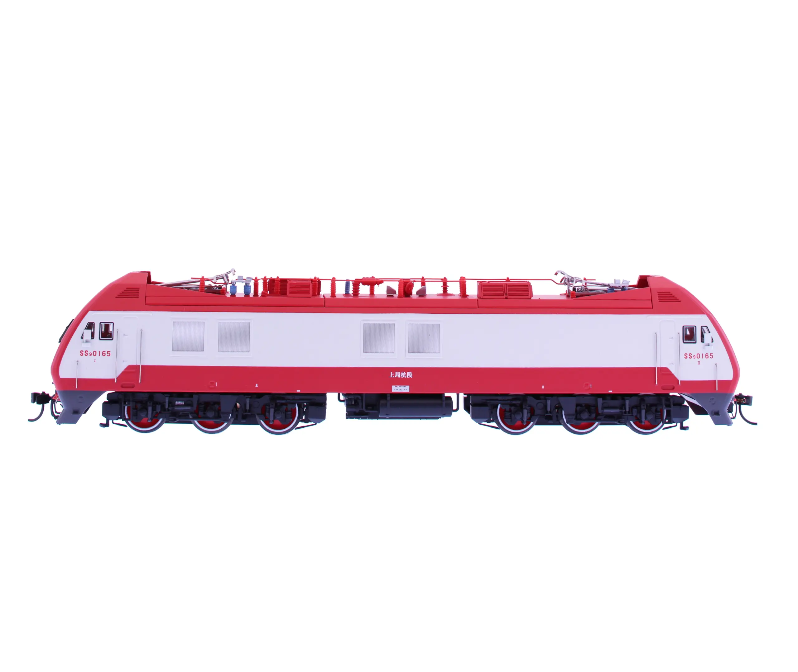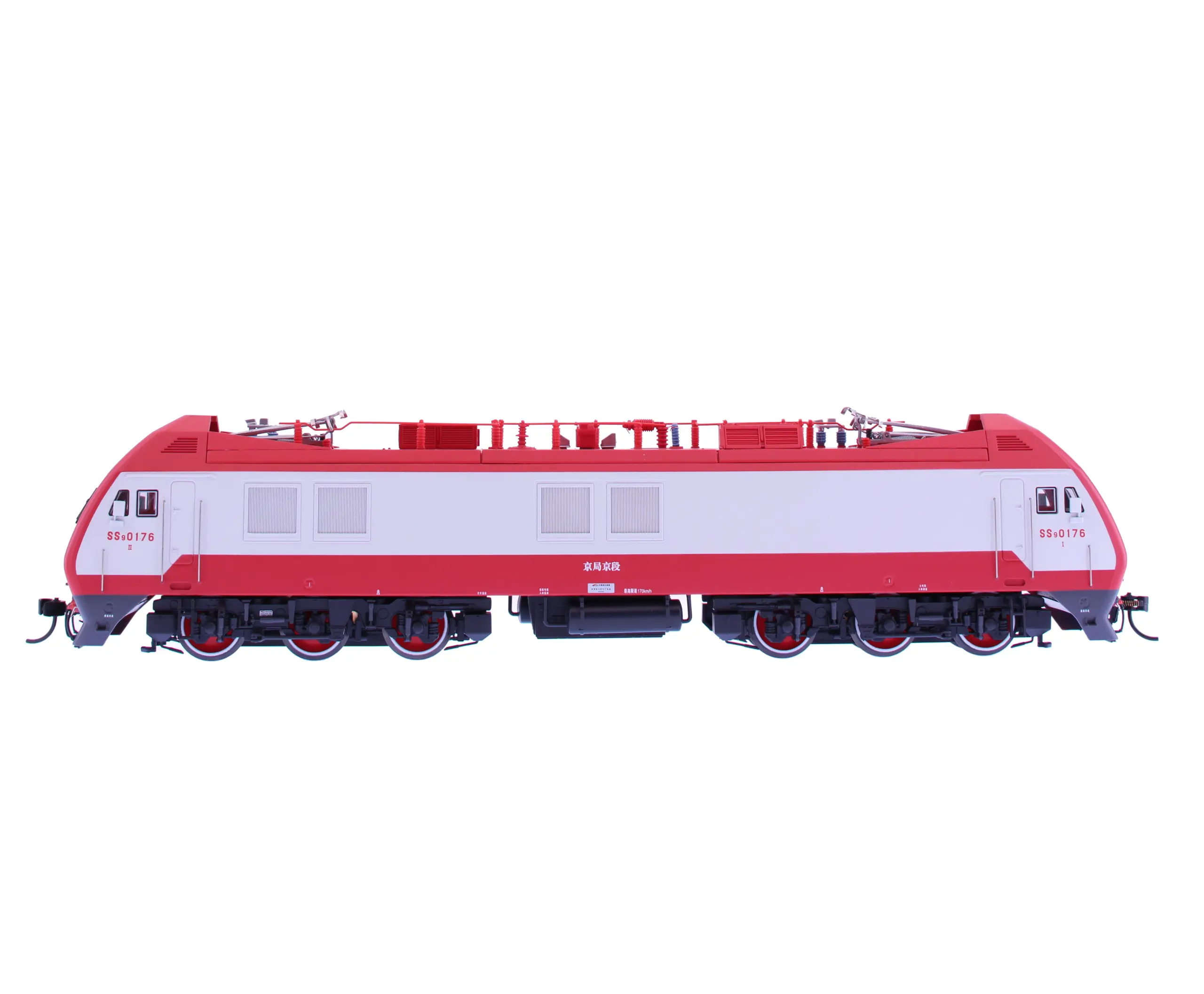 This HO scale diecast model of the Shaoshan SS9G electric locomotive captures the sleek, modern design with a striking red and white color scheme. Measuring in a 1:87 ratio, it features detailed panel lines, vents, black headlights, and realistic roof electrical components, offering an authentic appearance. The model includes black wheel assemblies with red accents and finely crafted bogies, showcasing high-quality craftsmanship and smooth surfaces. Made of PVC without high concern chemicals, this non-electric replica is suitable for adult collectors, measuring approximately 1:87 scale, and is perfect for display or gifting. Colors available include shades labeled 0176, 0159, 0210, and 0615.