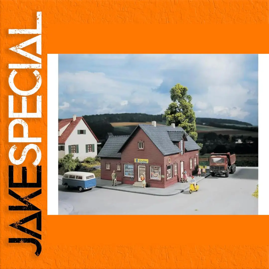 This exquisite HO scale train model building will be the crown jewel of your train layout. Crafted for assembly and made of durable ABS plastic, this model features a classic architectural design complete with a raised, gabled roof featuring grey tiles. Its warm reddish-brown hue beautifully showcases the wooden texture. The prominent “Gruber” sign enhances its charm, while the large windows provide a detailed view into the interior, perfect for adding life to your diorama. With dimensions of 194mm in length, 160mm in width, and 90mm in height, this vibrant addition reflects modern buildings set in a lively transportation theme.