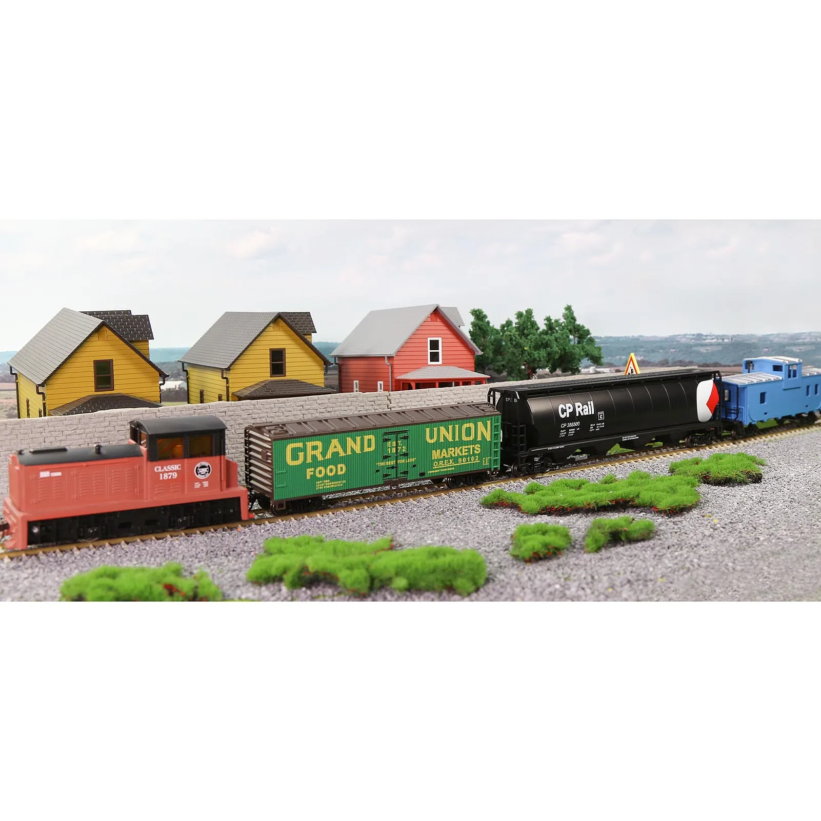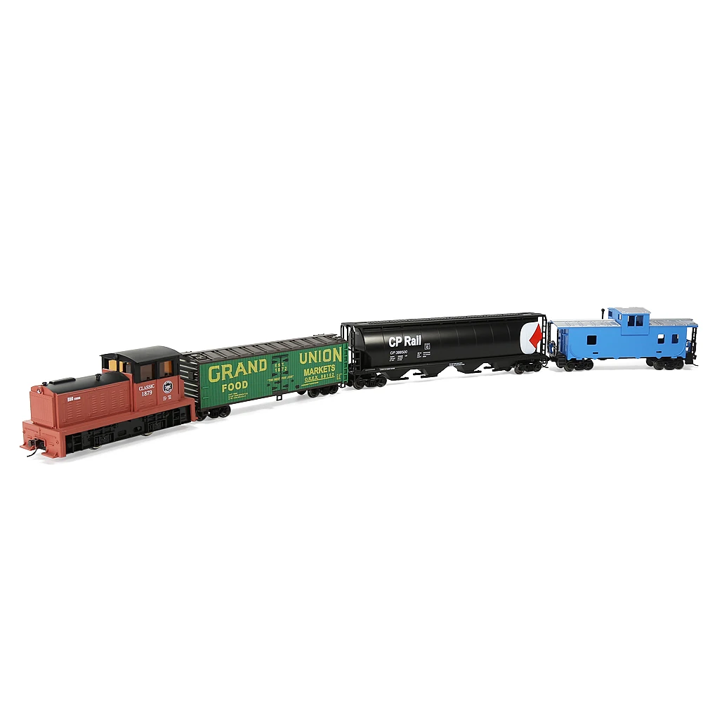 - Includes one locomotive and three wagons: a caboose, reefer, and hopper car, all crafted with high detail for a realistic appearance.