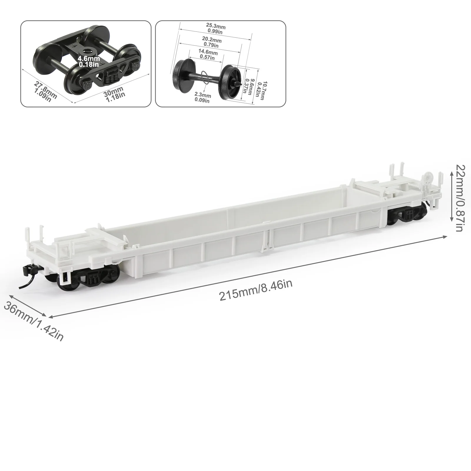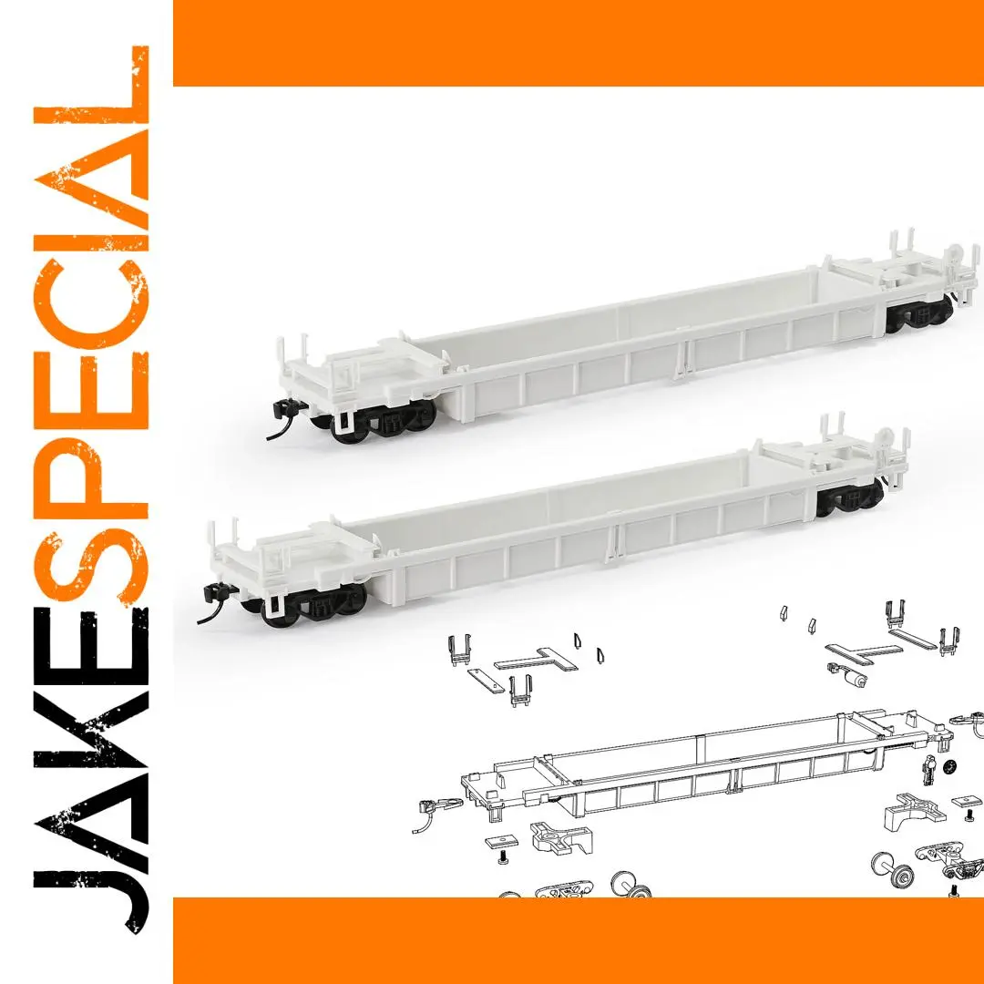 Enjoy the satisfaction of assembling these detailed HO scale 1:87 white well cars, available in both 40-foot and 53-foot lengths. Each set includes two unassembled well cars, complete with detailed black undercarriage components, coupling mechanisms, and intricate structural parts, all designed for model enthusiasts aged 18 and older. The sleek, rectangular design showcases open skip-like beds that emphasize industrial functionality and modern aesthetics. Perfect for adding realistic freight car models to your railroad layout, these well cars are ideal for creating authentic transportation scenes with precision craftsmanship and a minimalist yet detailed style that captures the essence of freight transportation.