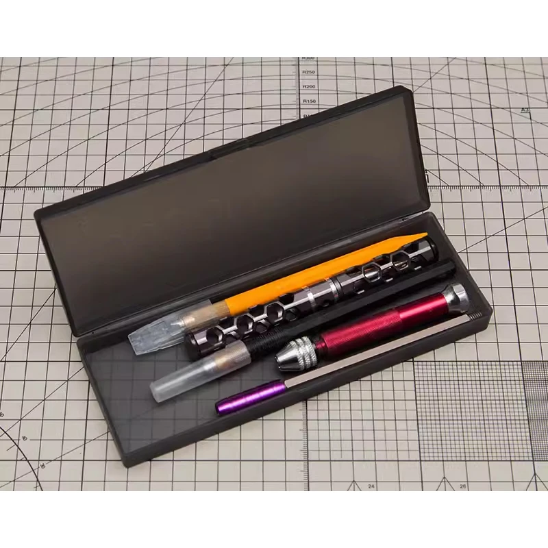 Experience organized efficiency with the Hobby Mie Plastic Model Building Tool Storage Box, available in two sleek, black translucent polypropylene designs (Type 1 and Type 2). Crafted with a frosted finish on both sides and a durable handle for portability, this versatile case is perfect for storing modeling tools, sewing supplies, or fishing accessories. Its compartmentalized interior keeps small parts like screws, gears, rods, and clips neatly organized, making your crafting environment clean and accessible. Suitable for ages 12 and above, it contains no hazardous chemicals and adheres to safety standards. Elevate your hobby space with this modern, practical storage solution designed for enthusiasts of all kinds.