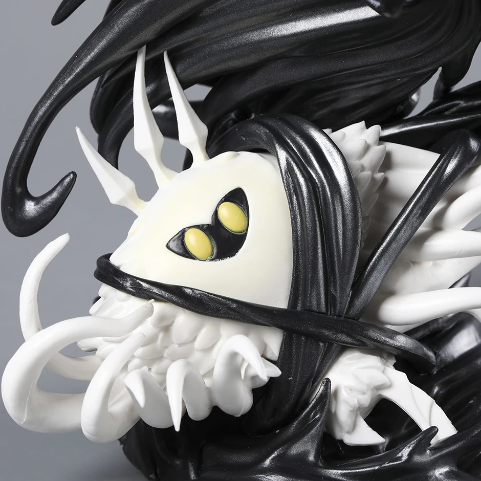 Experience the dark elegance of this meticulously crafted Hollow Knight collectible figure. Standing approximately 18 centimeters tall, this piece captures the menacing yet graceful essence of the iconic character from the beloved Western animation. The sleek black PVC body features jagged armor-like textures, sharp edges, and dynamic, curving appendages that lend a fierce, energetic stance. The large, glowing white eyes create a stunning contrast, drawing attention and adding to the mysterious aesthetic. Swirling tendrils or ribbons at the base in black and white enhance the figure's fluid, mystical vibe, perfect for display in any serious collection. This remastered, finished model offers detailed craftsmanship that highlights both elegance and ferocity, making it an impressive addition to your collection.