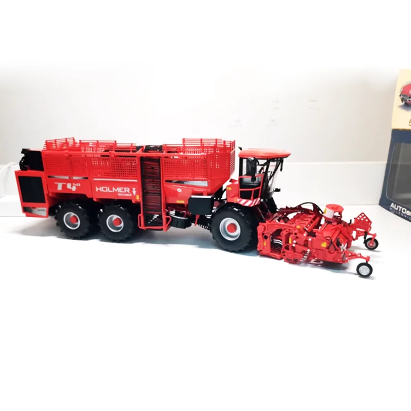 This 1:32 scale diecast model of the Holmer T440 alloy harvester offers a highly detailed and realistic representation of heavy-duty harvesting machinery, measuring approximately 43 cm long, 12 cm wide, and 18 cm high. Crafted from durable alloy, it features a striking red color with black and grey accents, showcasing intricate components such as cutting blades, mechanical arms, and structural details. The model includes an elevated operator’s cabin with a boxy, utilitarian design, large rubber tires with silver rims, and a distressed paint finish on the cab roof, adding character. Perfect for adult collectors and enthusiasts, this static display piece emphasizes rugged industrial aesthetics and exceptional craftsmanship.