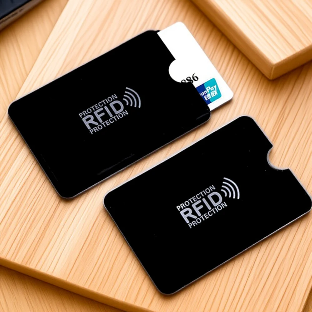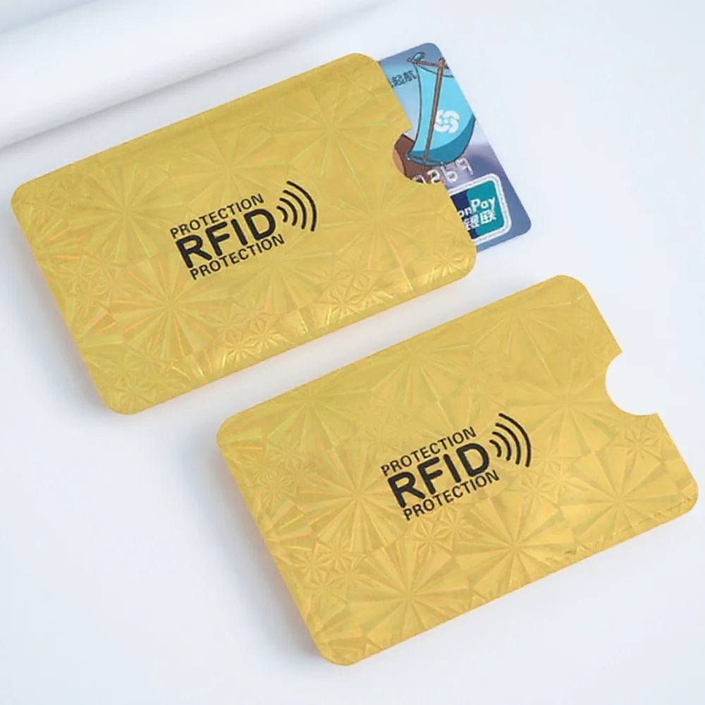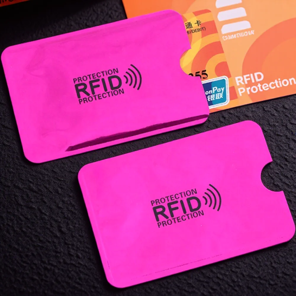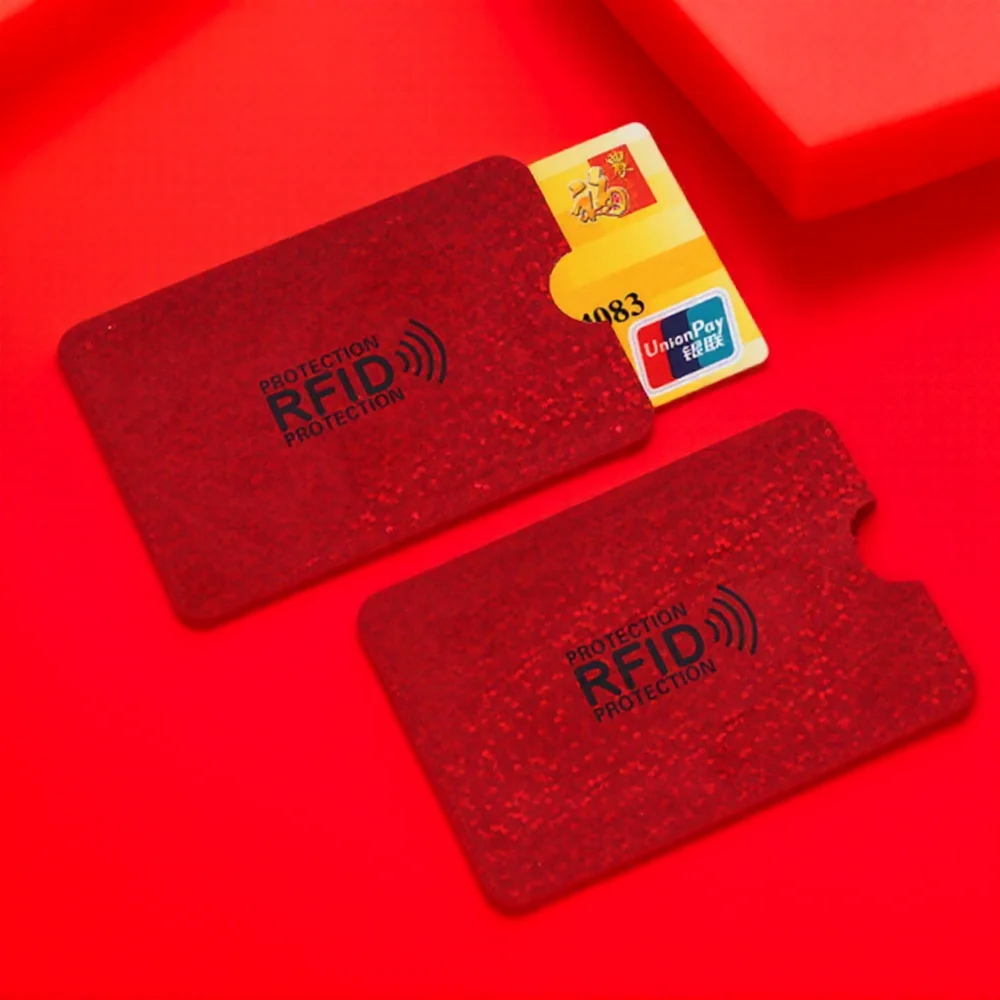 Protect your cards with this set of five RFID-blocking wallet sleeves measuring 65mm x 90mm, crafted from durable aluminum foil composite material. These sleek, weather- and water-resistant sleeves prevent electronic pickpocketing, unauthorized scanning, and magnetic, static, or scratch damage. Designed to fit effortlessly into wallets, purses, or used as mini wallets, they feature a modern, lightweight design without zippers and come in stylish colors including black, blue, gold, pink, red, and silver. Ideal for safeguarding ID cards, credit cards, and bank cards, these unisex sleeves combine high-tech security with a minimalist aesthetic.