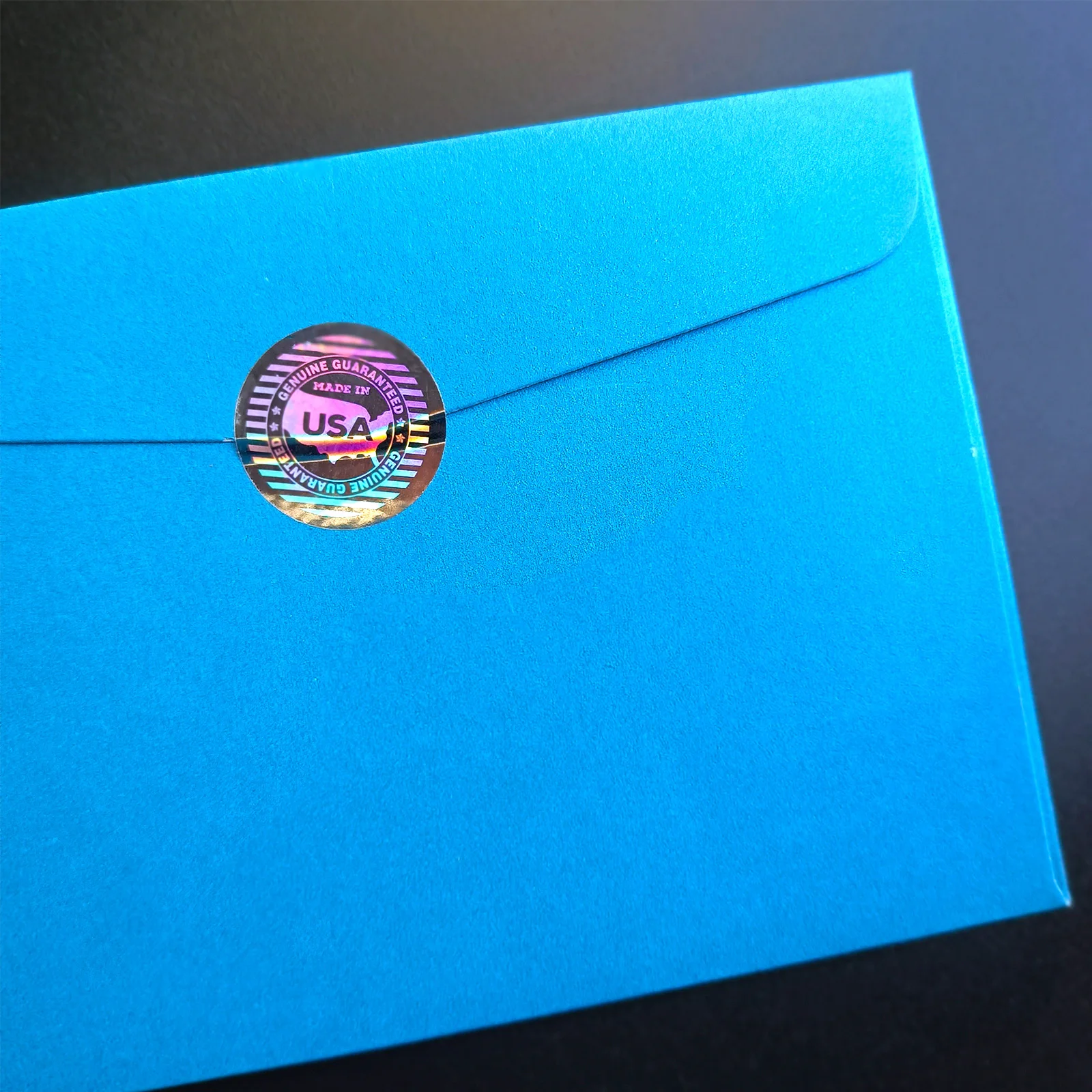 Protect your valuable items with our Anti-fake Hologram Laser Holographic Sticker. Made in the USA from high-quality plastic, these 20mm circular stickers provide a reliable security seal that leaves a permanent mark when removed, ensuring your resources are safeguarded against tampering. Suitable for various surfaces, including paper, plastic, and metal, these versatile labels come in packs of 300, 600, or 1200 pieces, making them perfect for all your labeling needs. Enjoy peace of mind knowing your products are protected with eye-catching holographic designs that deter tampering while enhancing your brand’s integrity.