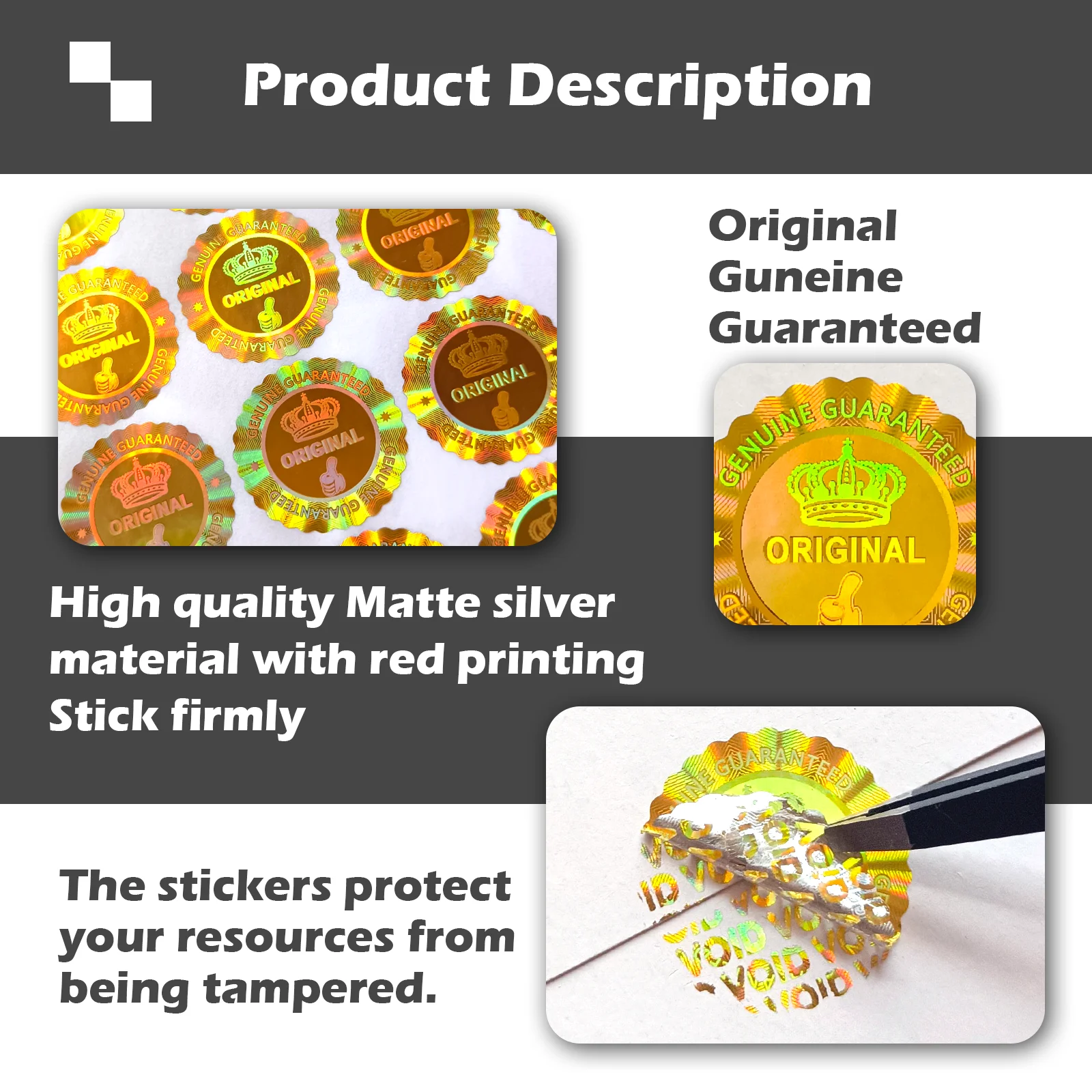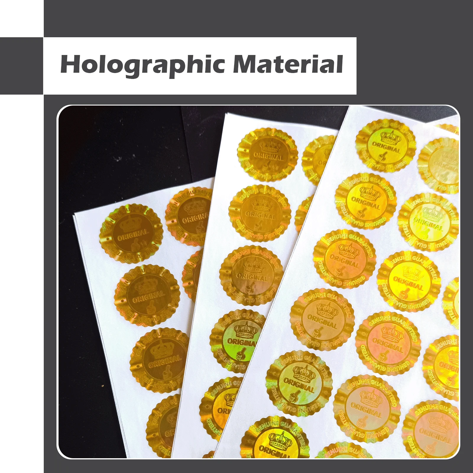 - The holographic effect refracts light from different angles, making each sticker visually captivating while serving as a reliable security feature to prevent counterfeiting or tampering.