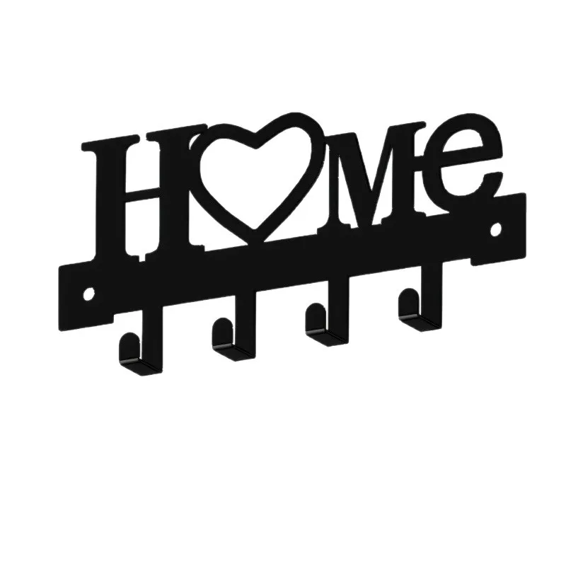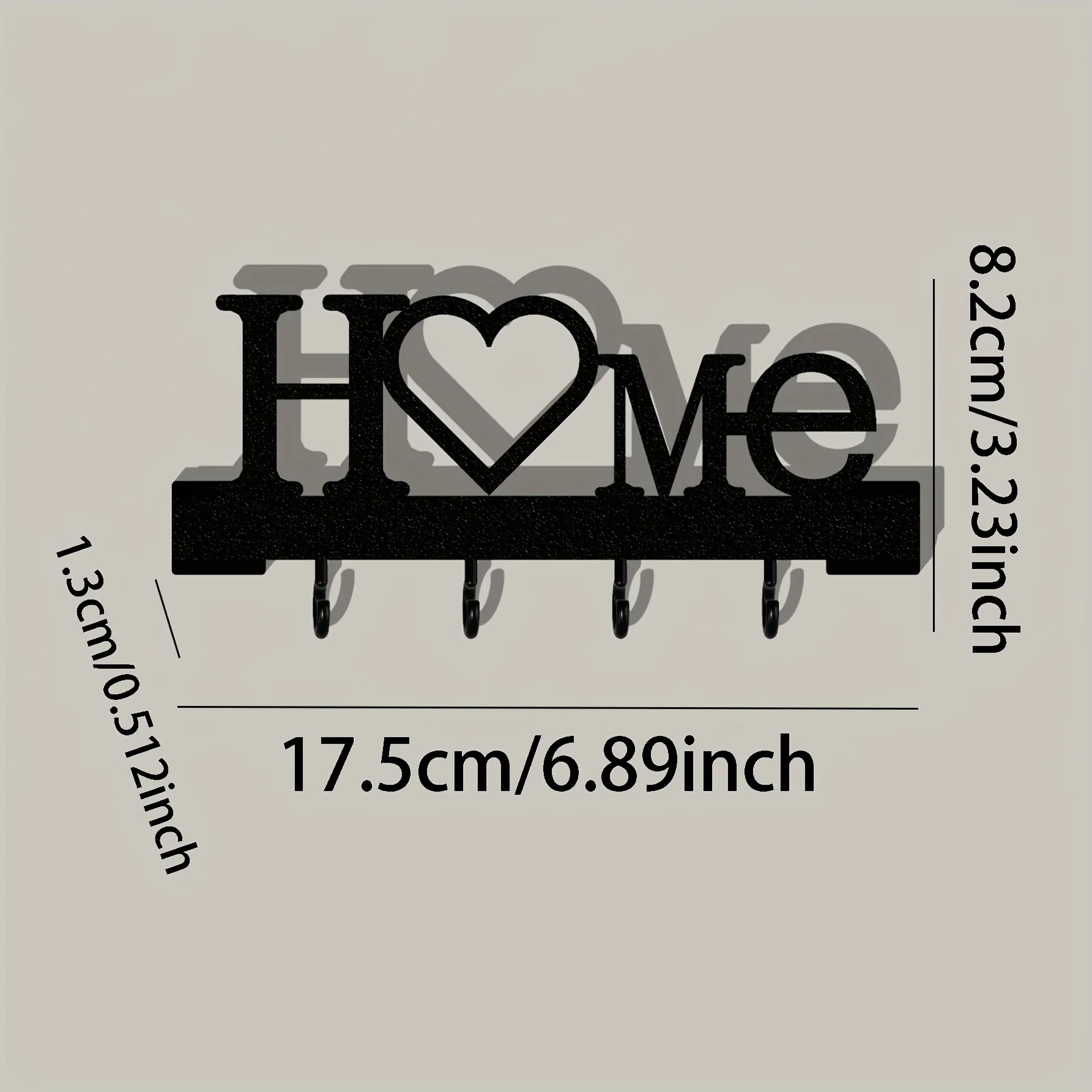 Transform your entryway or living space with this charming “Home Love” key holder. Crafted from sturdy iron, it features a visually appealing design with the word “HOME” and a heart replacing the “O,” creating an inviting, warm atmosphere. The black finish offers a sleek, modern look, while the white option adds a touch of elegance. Equipped with four evenly spaced hooks, it provides practical storage for keys and small accessories, helping you stay organized effortlessly. Designed for easy no-drill installation, this wall-mounted piece seamlessly combines functionality with aesthetic appeal, making it perfect for home, office, or bathroom decor. Its compact size and durable build ensure both stylish presence and long-lasting use.