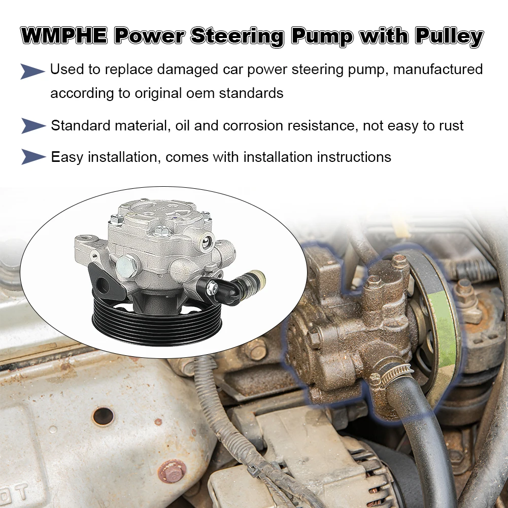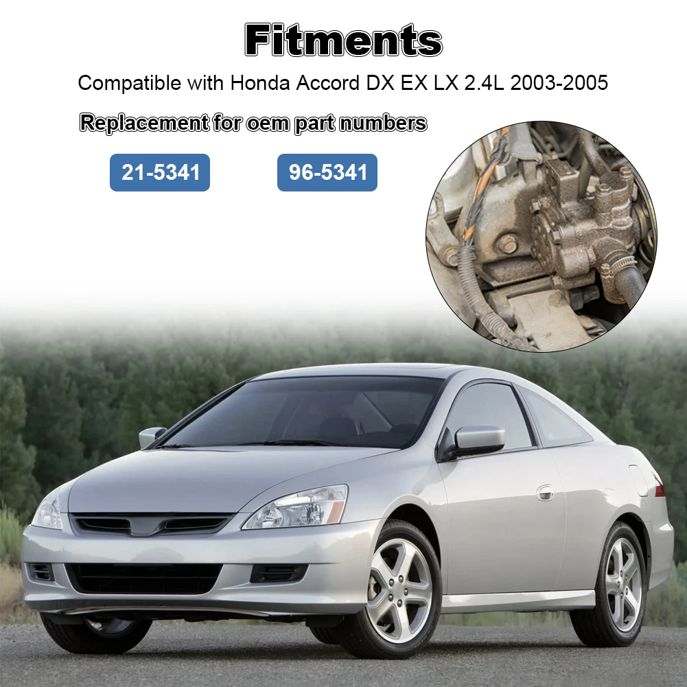 Enhance your vehicle’s steering performance with this durable power steering pump, specifically designed for Honda Accord models from 2003 to 2005, including DX, EX, and LX trims with a 2.4L engine. Featuring the OEM number 21-5341 and part number 96-5341, this pump includes wheels for easy installation and reliable operation. Built with a rugged, industrial aesthetic, the pump showcases a matte black ribbed pulley secured with a central metallic hex nut, complemented by light gray and silver components for a practical, sturdy appearance. This high-quality replacement ensures smooth steering and dependable driving experience for your Honda Accord.