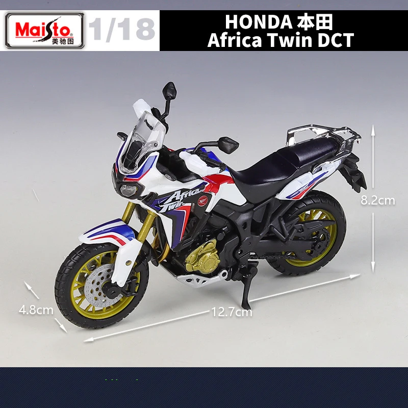- This 1:18 scale diecast Honda Africa Twin DCT model is made from alloy and plastic, providing strength, realism, and sophisticated detailing for collectors and enthusiasts alike.