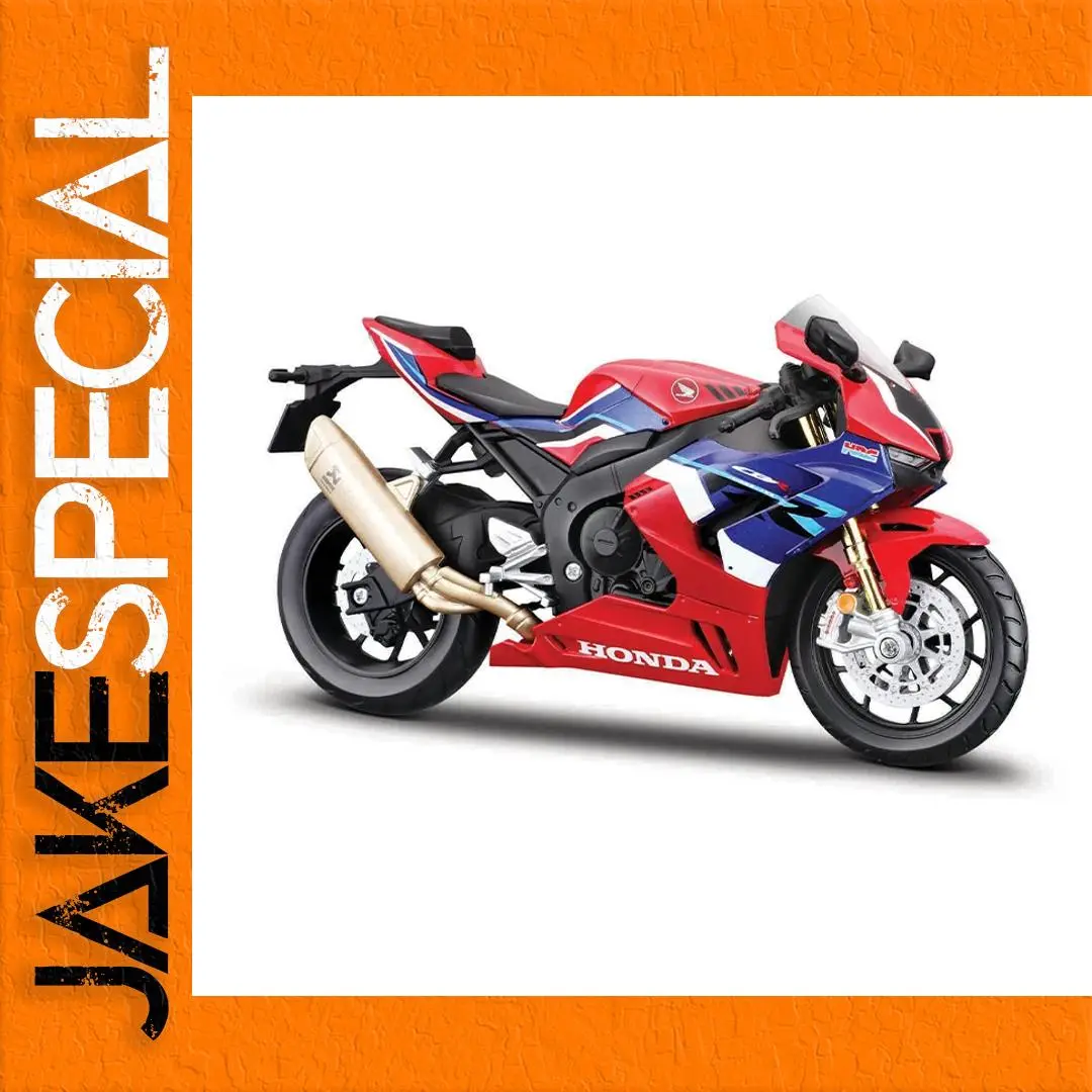 - Features a vivid red body with white, blue, and black racing graphics, capturing the essence of high-speed Honda racing bikes for an eye-catching display.