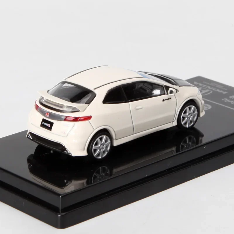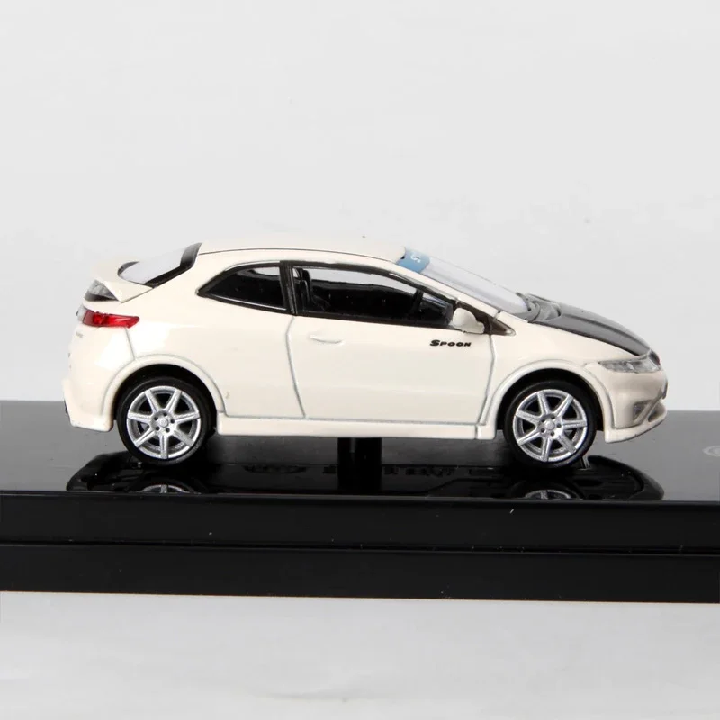 Experience the thrill of owning a meticulously crafted miniature of the Honda Civic FN2 2007. With its striking two-tone color scheme of white body accented by a black hood, roof, and rear spoiler, this die-cast alloy model captures the sporty essence of the original vehicle. Measuring approximately 7.5 cm in length, it's designed for collectors and enthusiasts who appreciate fine craftsmanship. The model features realistic details including narrow, elongated headlights, a subtle front bumper with air intakes, and darkly tinted windows. The silver multi-spoke alloy wheels with rubber tires rotate smoothly, adding to its authenticity. Perfect for display, gifting, or as a hobby piece, this model offers both aesthetic appeal and durable quality.