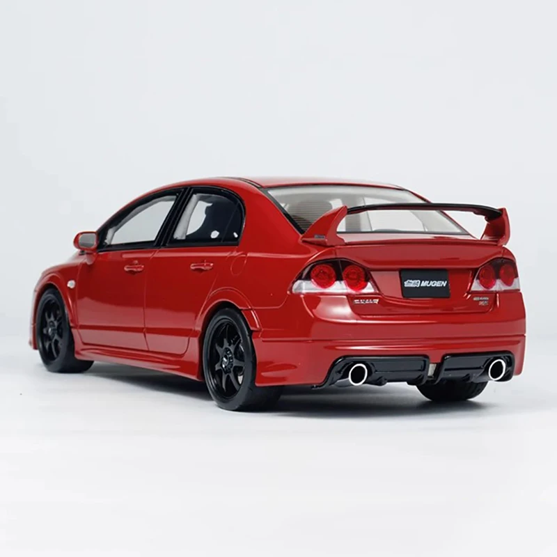 Experience the thrill of owning this meticulously crafted 1:18 scale resin model of the iconic Honda Civic MUGEN RR FD2. Measuring approximately 26 centimeters long and 11 centimeters wide, this vivid high-gloss red masterpiece captures every detail of the original sports car. From the aggressive front fascia to sharply contoured headlights, large air intakes, and subtle hood vents, each element exudes performance and style. The transparent windows allow you to admire the detailed interior features, including seats and dashboards. The black multi-spoke wheels with low-profile tires create a dynamic stance, complemented by a prominent rear spoiler and clear taillights. Crafted from resin, rubber, and plastic, this limited edition model offers exceptional craftsmanship, making it a perfect display piece that will elevate your collection.