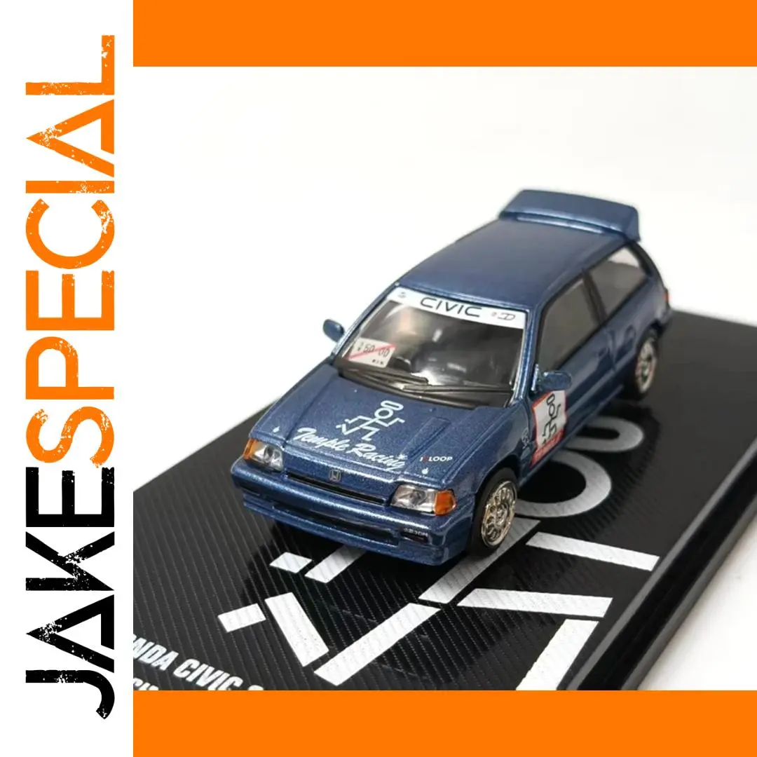 Experience the thrill of owning a beautifully crafted diecast model of the Honda Civic SiE-AT by WELLY. This 1:64 scale masterpiece features an eye-catching vibrant blue exterior with a gleaming finish that accentuates its sleek curves and sporty design. With detailed elements like a prominent rear spoiler and striking headlights, this model car is not just a display piece but a collector's item. Adorned with “Temple Racing” graphics and sponsor decals, this dynamic model embodies racing spirit. Its durable metal alloy construction and small, authentic alloy rims affirm its high-quality craftsmanship, making it perfect for decoration, gifts, or personal enjoyment.