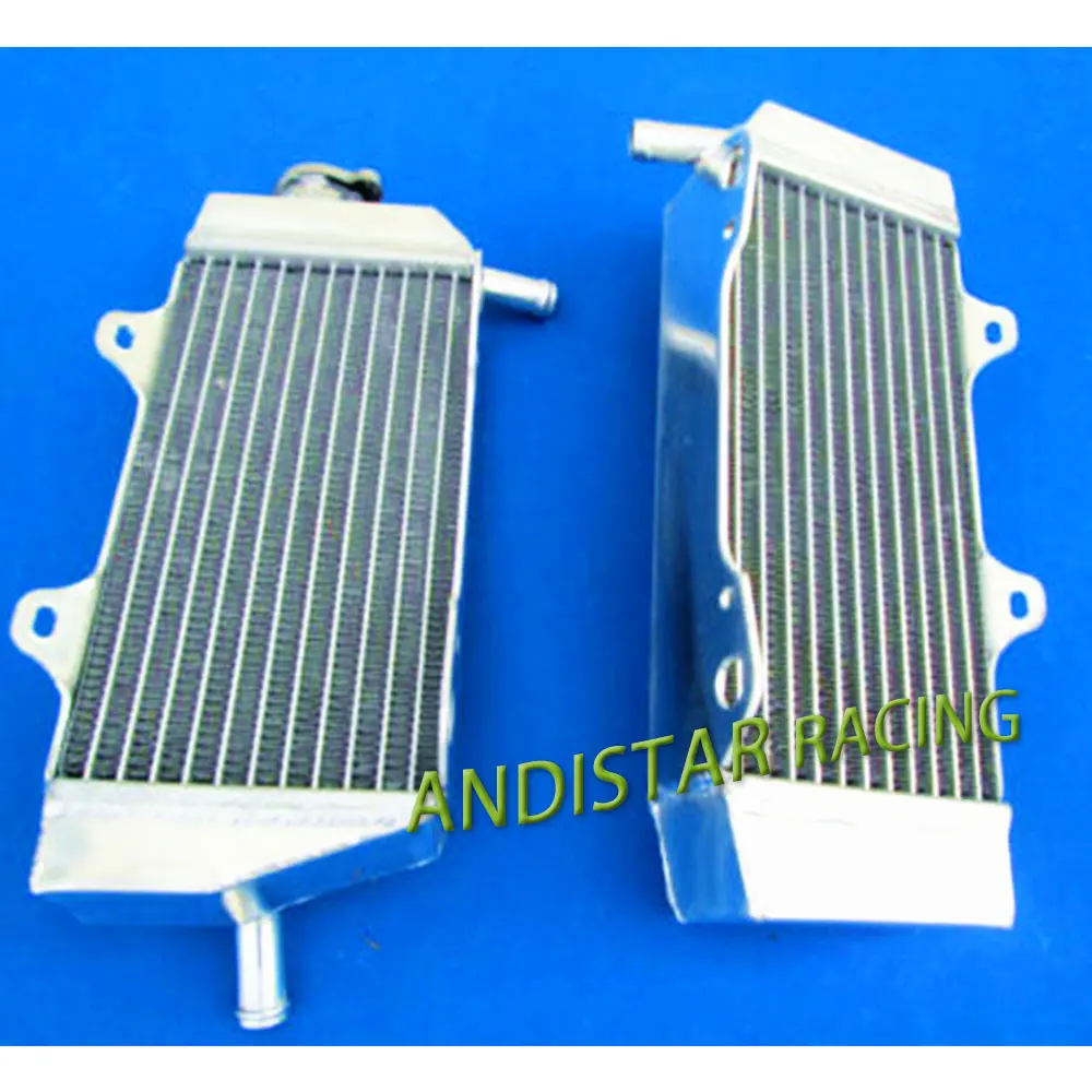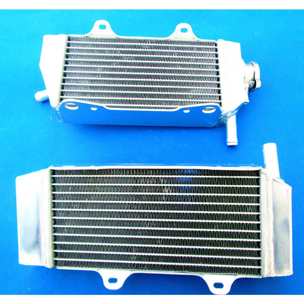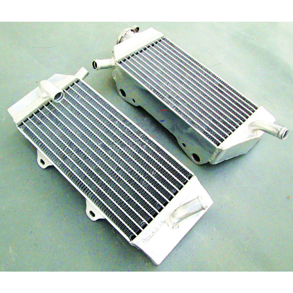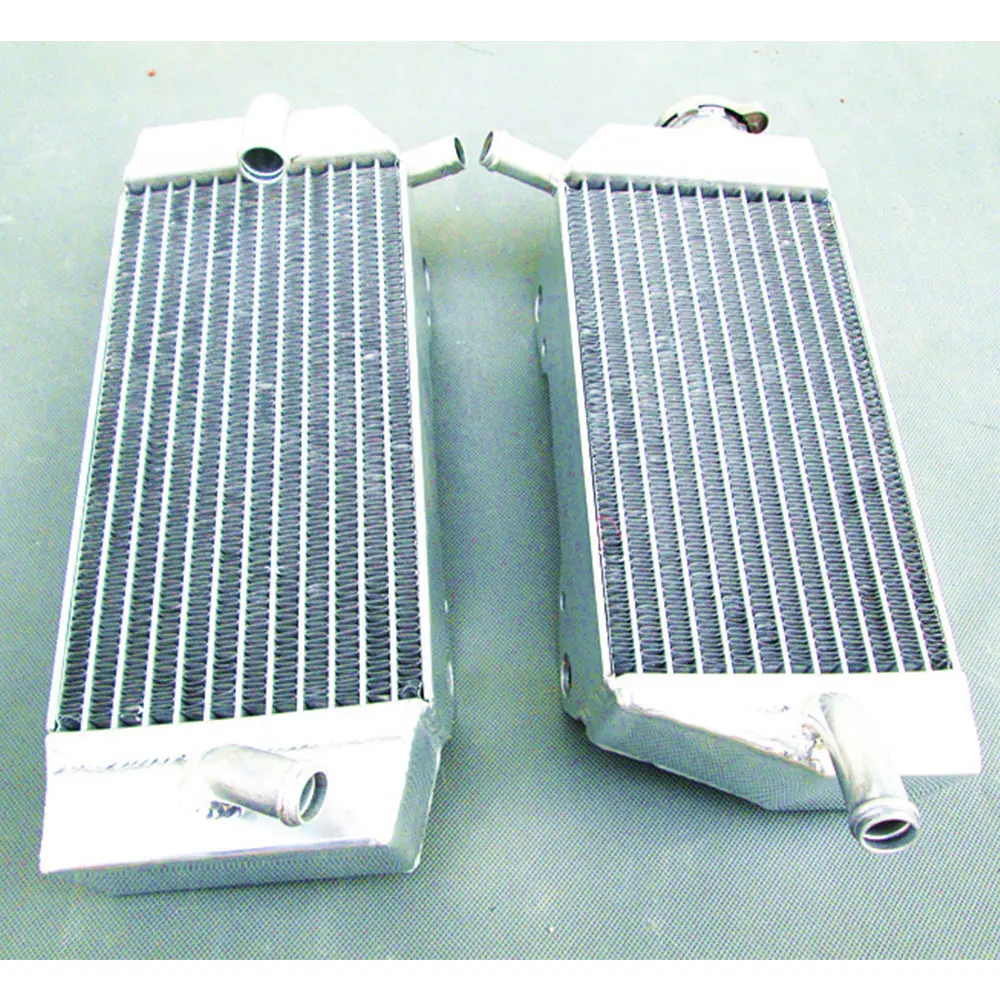 Experience superior cooling with this premium aluminum radiator set designed for Honda CRF450R models from 2005 to 2008. Crafted from T-6061 aluminum, these radiators boast a sleek, polished finish on their tanks and a textured, silver core filled with thin, closely spaced cooling fins. The core is vacuum brazed without epoxy, and the tanks are TIG welded for maximum durability and strength. Built for demanding conditions, they provide approximately 40% more cooling capacity than standard radiators, ensuring your motorcycle runs smoothly even under intense racing conditions. Installation is straightforward with minimal modifications required, and the sturdy construction guarantees long-lasting performance. Elevate your bike’s performance with truly reliable cooling power.