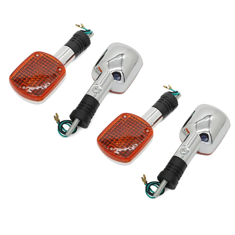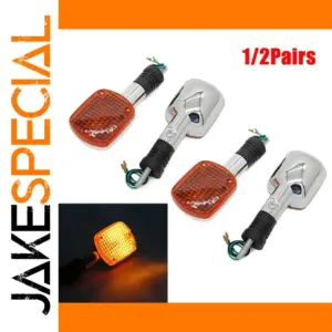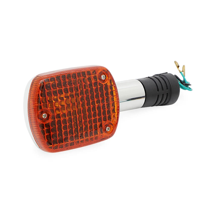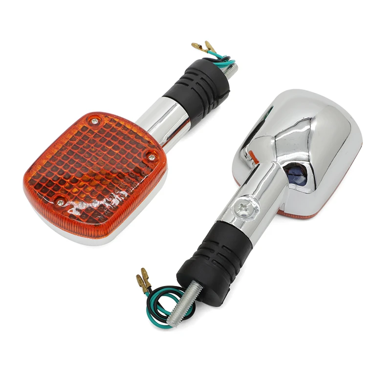 Enhance your motorcycle’s style and safety with this durable turn signal blinker set, featuring a rectangular amber lens cover measuring 80mm x 65mm and a total length of 160mm. Crafted from high-quality plastic with a polished chrome handle and backing, these rear-mounted signals deliver a sleek, reflective finish that complements Honda cruiser models such as Shadow VT400, VT600, VT750, VT1100, Steed, VLX400, VLX600, Rebel CA250, CMX250, CMX400, Magna VF250, VF750, VTX1300, and VTX1800. The set includes one pair, designed for easy installation and long-lasting performance, adding bold visibility and a refined look to your motorcycle.